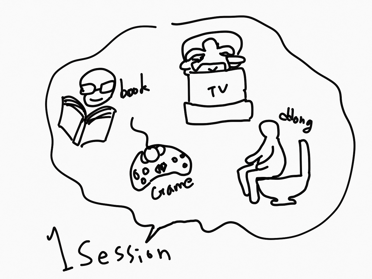 샤워를 할 수도 있고, 똥을 쌀 수도 있는데 이런 활동의 집합이 하나의 방문으로 정의되는 것과 같다. 다시말해 1의 세션은 1의 기간으로 퉁칠 수도 있는 것이다.