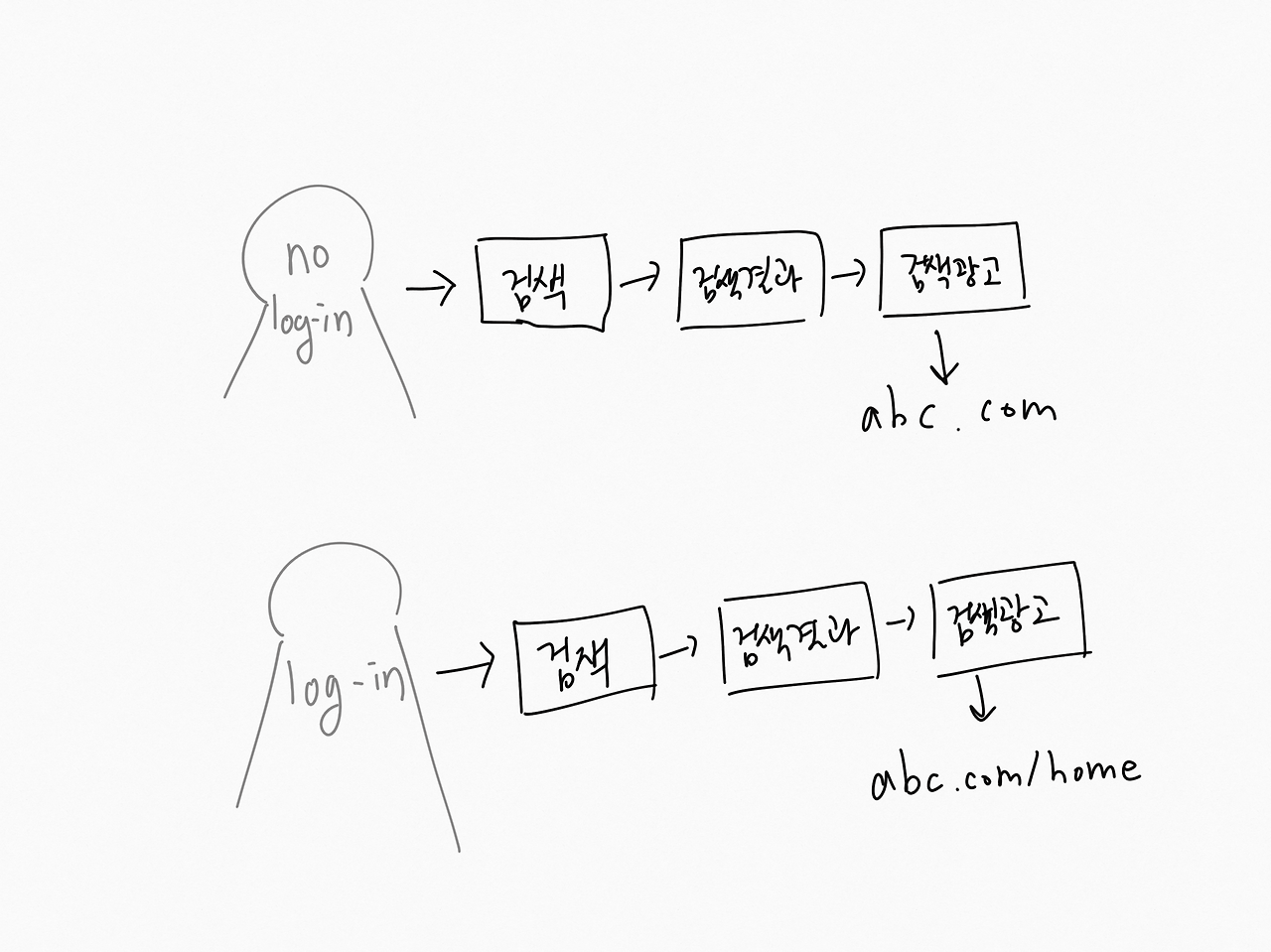 우리 웹 사이트는 로그인한 유저와 로그인 하지 않은 유저가 도착하는 페이지의 URL이 다르다. 이게 무슨 말이냐면 예를들면 이렇다.
