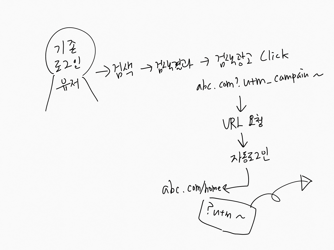 로그인한 유저가 자동으로 이동하게 되는 abc.com/home을 기본 랜딩페이지 URL과 똑같이 가도록 해서 리다이렉팅이 되지 않게 하여 태깅해놓은 utm이 무시되지 않도록 개발자에게 요청하면 된다. 이렇게 하게 되면 캠페인 태깅이 로그인한 유저도 유지되므로 원래의 캠페인 태깅이 무시되지 않을 것이다. 잘 생각해보면 대부분의 홈페이지가 로그인 전의 기본 랜딩페이지의 URL과 로그인 이후 처음 가는 화면에서의 URL이 같다. 대표적인게 바로 네이버.