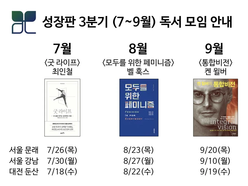 서울 문래/강남, 대전 둔산동 3개 모임은 같은 책으로 진행됩니다.