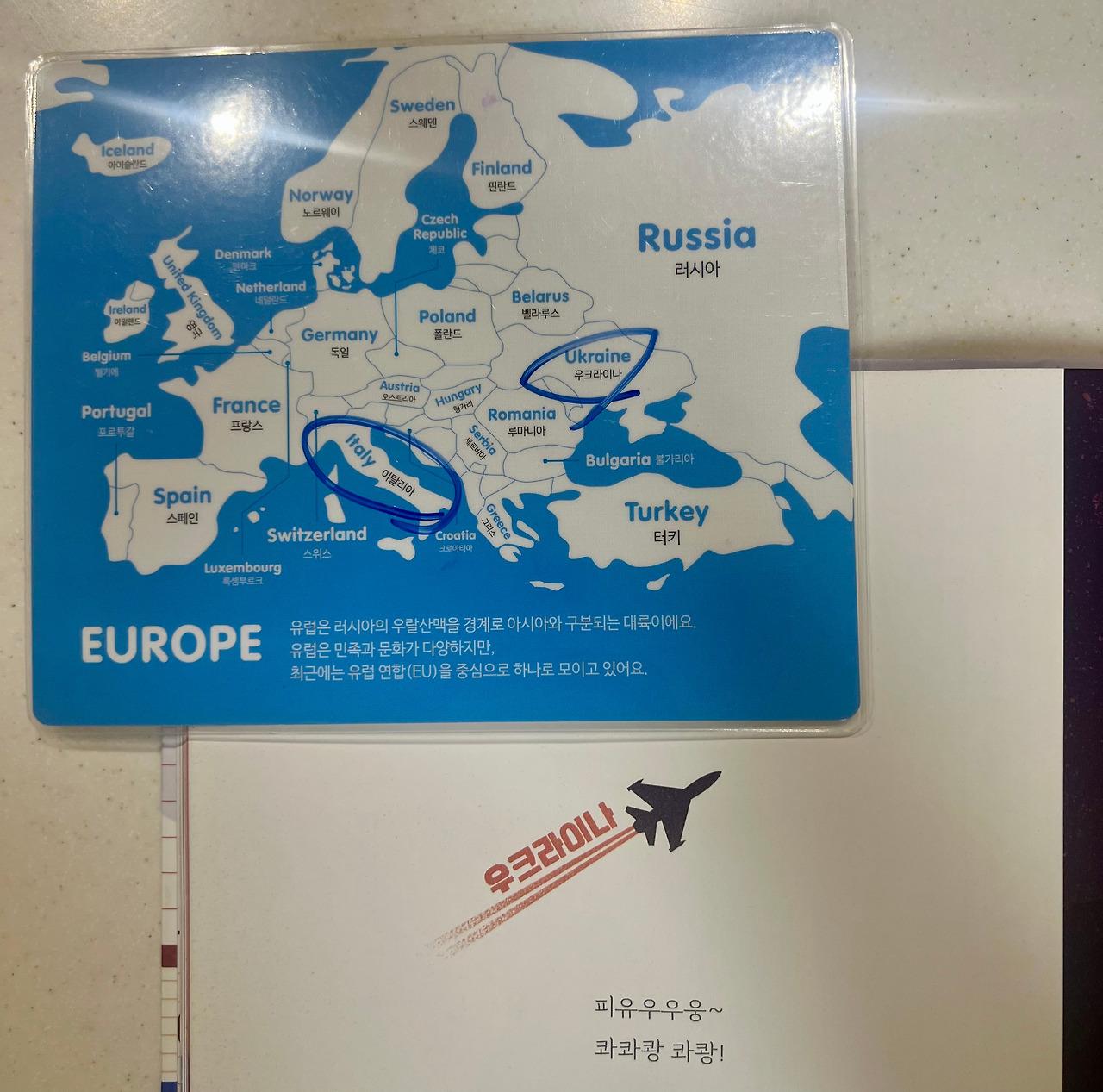 세계 여러 나라 아이들이 밥을 먹는 장면이 나온다. 한국, 이탈리아, 미국... 우크라이나까지