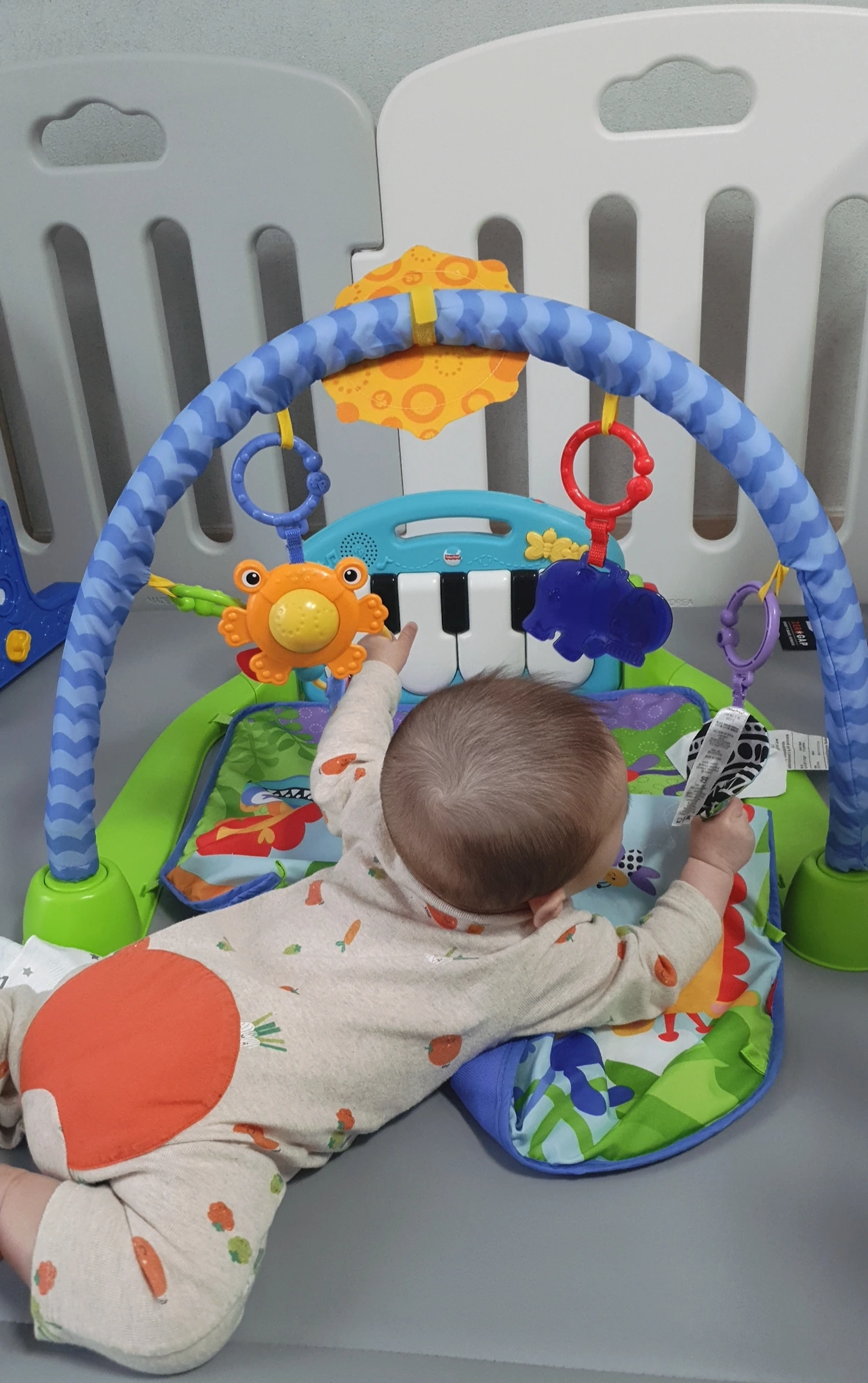 신생아시기보다 잘 자고, 분유 먹는 텀은 길어졌지만 깨어있는 시간이 길어지면서 아기가 심심해했다. 이유 없이 칭얼댈 때가 있었는데 그게 바로 심심하다는 신호였다. 처음엔 안아 들고 이방 저 방 구경시켜 주면 참 좋아했다. 단점은 하루종일 안고 돌아다니기엔 엄마의 체력이 힘에 부친다는 것이었다.