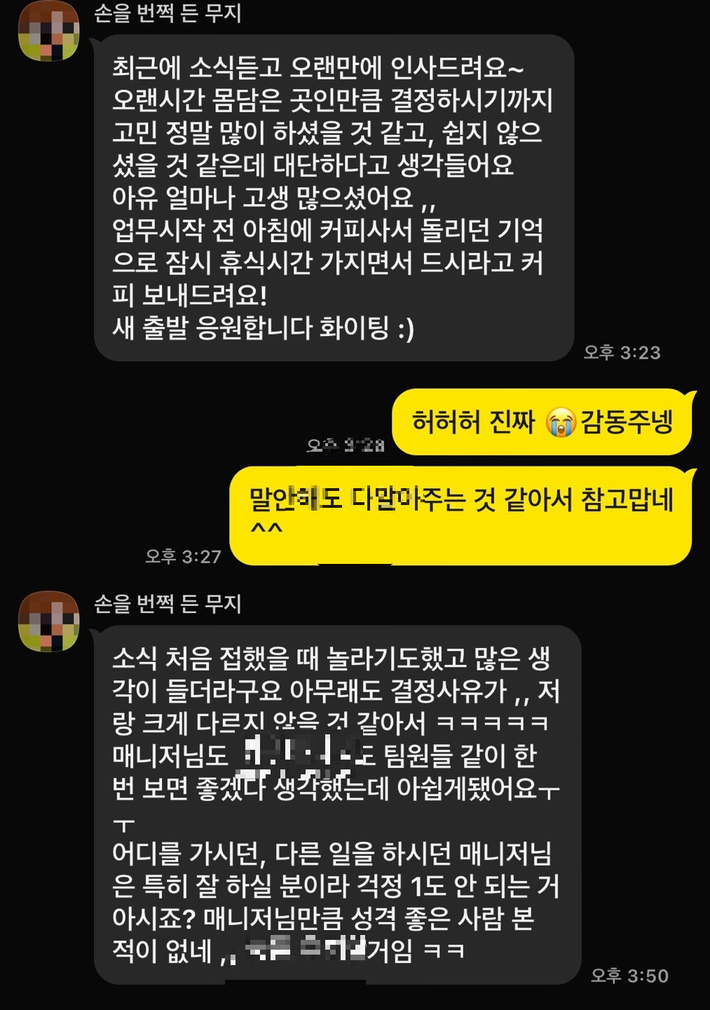 함께 일하다가 퇴사한 동료가 보내준 카톡이었다.