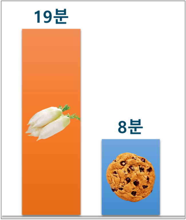 2000년에 마크 무레이븐과로이 바우마이스터 교수는 자기 통제에 대한 실험을 실시한다. 2 그룹으로 나뉜 참가자들은 식사를 하지 않은 상태에서 실험에 참가한다. 한 그룹에는 초코칩이 다른 그룹에는 무가 눈 앞에 각각 주어지고, 눈앞의 음식을 먹지 말고 참으라고 한다. 당연히 초코칩을 받은 그룹이 식욕을 참기 더 어려웠을 것이다. 실험이 끝날 때까지 음식에 손을 댄 사람은 아무도 없었다. 재미없는 결과처럼 보인다. 하지만 실험의 진짜 목적은 다른 데 있었다.
