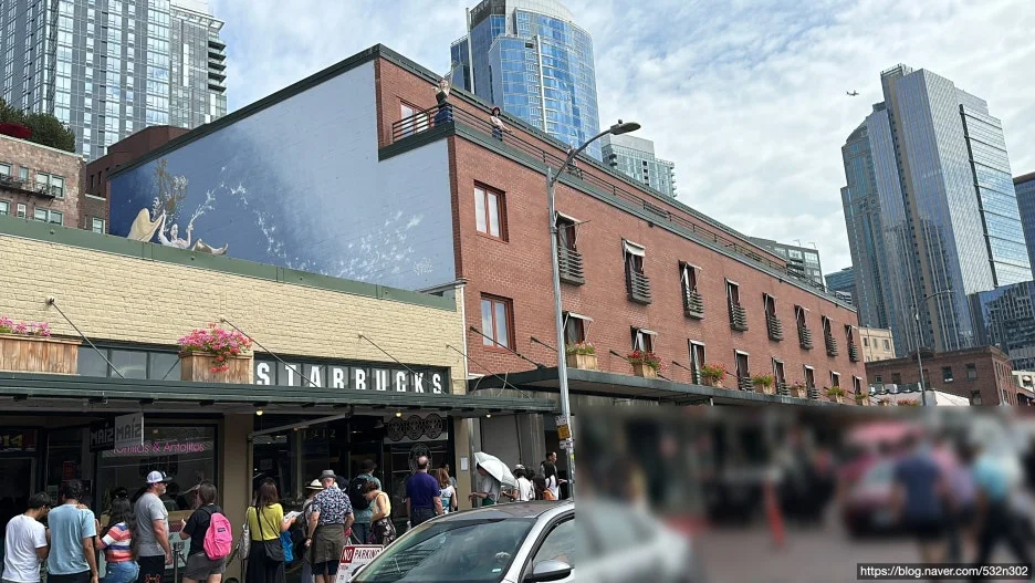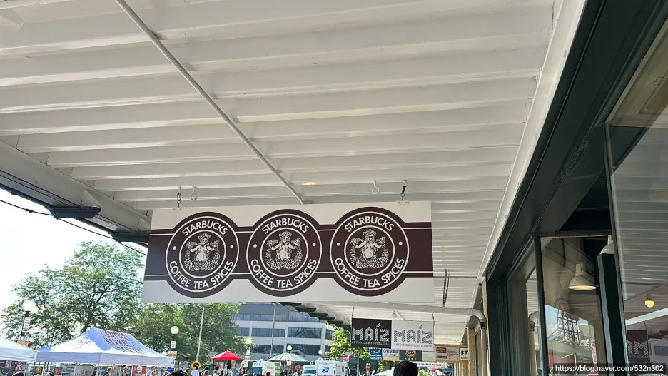 시애틀에 놀러 간다고 하면 빠뜨리기 쉽지 않은 스타벅스 1호점! 사실 내부에서 여유롭게 커피와 여유를 즐길 수 있는 곳은 아니다. 오래 줄을 서서 들어간 후 구매할 것들을 빠르게 골라 나오는 곳에 더 가깝다. 첫날 스타벅스에 줄이 별로 없길래 걱정 없이 다음날에 왔는데, 줄이 두 배는 더 있어 꽤 오랜 시간 대기했다. 혹시라도 대기 손님이 적다면 바로 그때 방문하시라. 오래 대기하는 손님들에게 작은 음료수를 나눠주는 싱그러움도 기억난다.