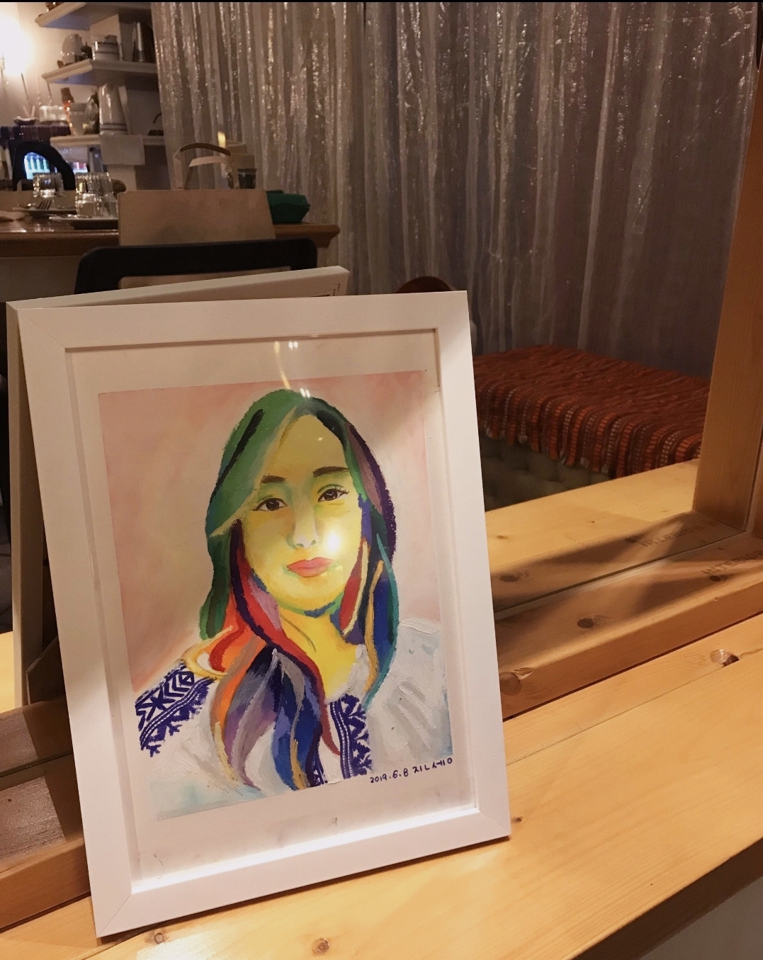 무언가를 잘하는 사람, 특히 전문가라면 아마추어들의 색 선택이나 터치의 미숙함이 잘 보일 텐데도 선생님께서는 각자가 가진 장점을 한껏 칭찬해 주시면서 과감하게 자신 있게 그림을 그릴 수 있도록 해 주셨다. 나 또한 얼굴 그림이 초록색이 되고 머리카락이 안 예쁜 파란색이 될 때마다 당황했지만 선생님 덕분에 과감하게 다른 색이나 선들을 넣어가며 나름 만족스러운 그림을 완성했다. 나도 미숙함 속의 원석 같은 좋은 점들과 예쁜 점들을 찾아 주고 도와주는 사람이 되고 싶다고 생각한, 그리고 선생님 같은 분들이 앞으로도 흥하셨으면 좋겠다고 생각한 날이었다.