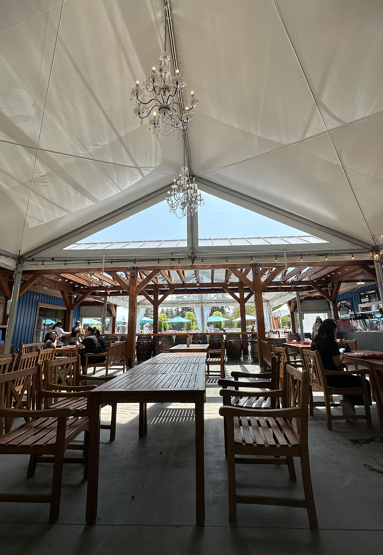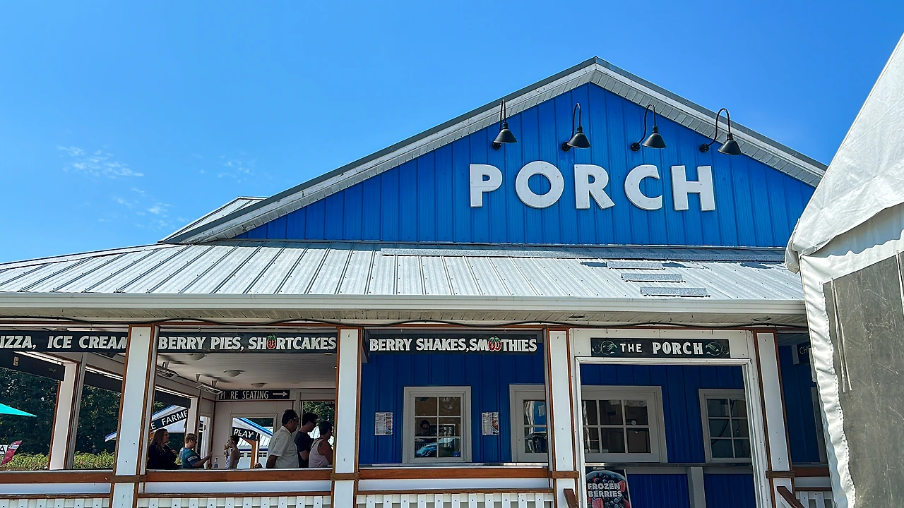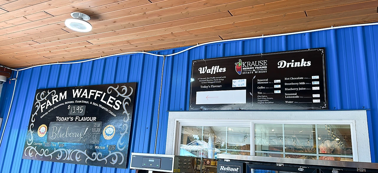 아직 뜨거운 날씨였지만 그늘을 만들어 놓은 안쪽 공간은 불쾌하지 않을 만큼 적당히 더웠다. 매일매일 토핑을 바꾸면서 ‘오늘의 와플'을 판다고 했는데, 오늘은 다행히 내가 따는 대신 사 먹기로 한 블루베리가 토핑으로 올라간 와플을 파는 날이었다.