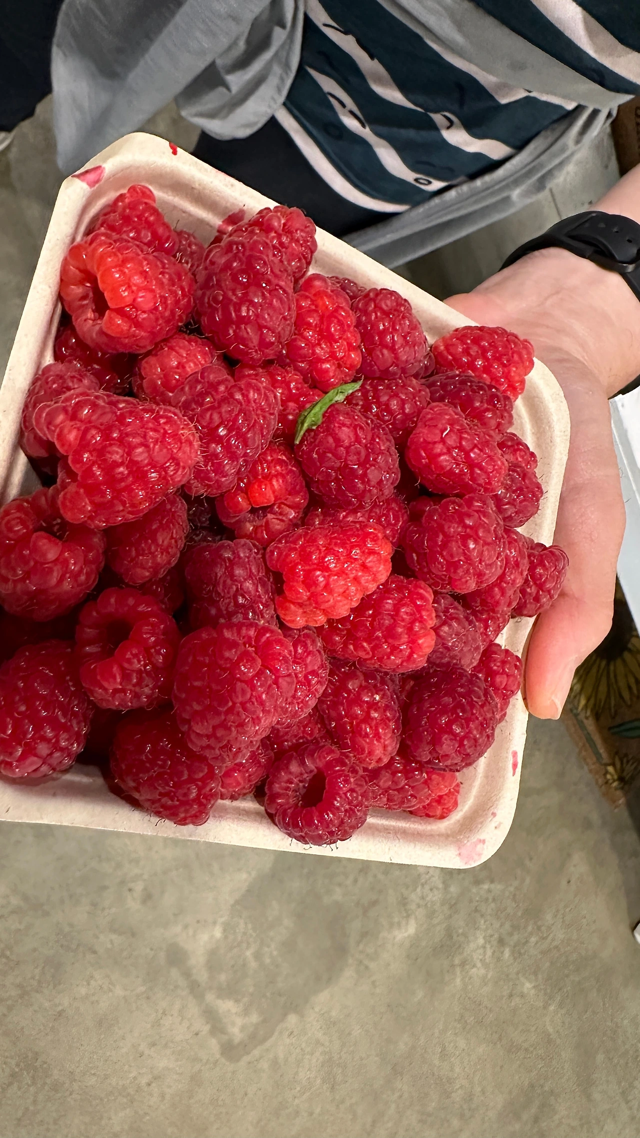 알고 보니 블루베리 농장은 이곳에서 차를 타고 이동해야 한다고 하고, 이 장소에는 다양한 음식과 기념품 등을 팔고 있었다. 소담한 가게 안에는 농산물과 기념품을 파는 곳이 있었다. 익숙한 듯 모양이 미묘하게 다른 채소들을 구경하는 것이 재미있었다. 숙모께서는 다른 곳에서 산 것이 맛이 없었다며 이곳에서 산딸기를 구매하셨다. 씻고 먹어야 한다지만 이 영롱한 자태를 보면 바로 손이 가지 않을 수 없다.