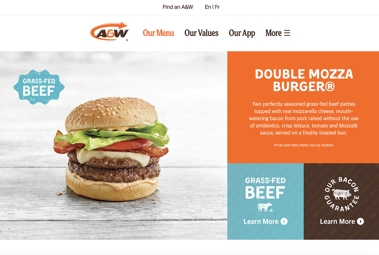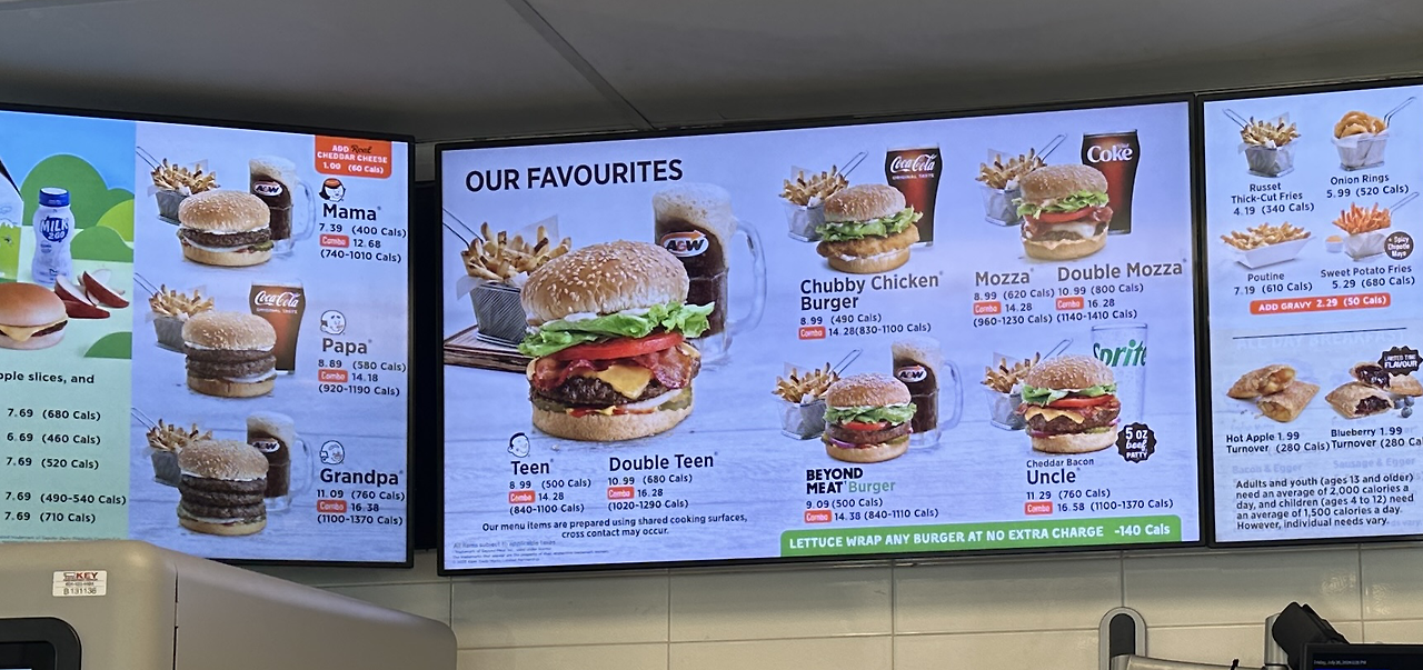 근데, 글쎄 마마버거도 모짜렐라 튀김 같은 건 애초에 안 들어있는 비주얼인 거예요. 또 혼란이 왔죠…….답답해서 이제 귀찮지만 A&W 홈페이지까지 들어갔죠. 근데 그거 아세요?