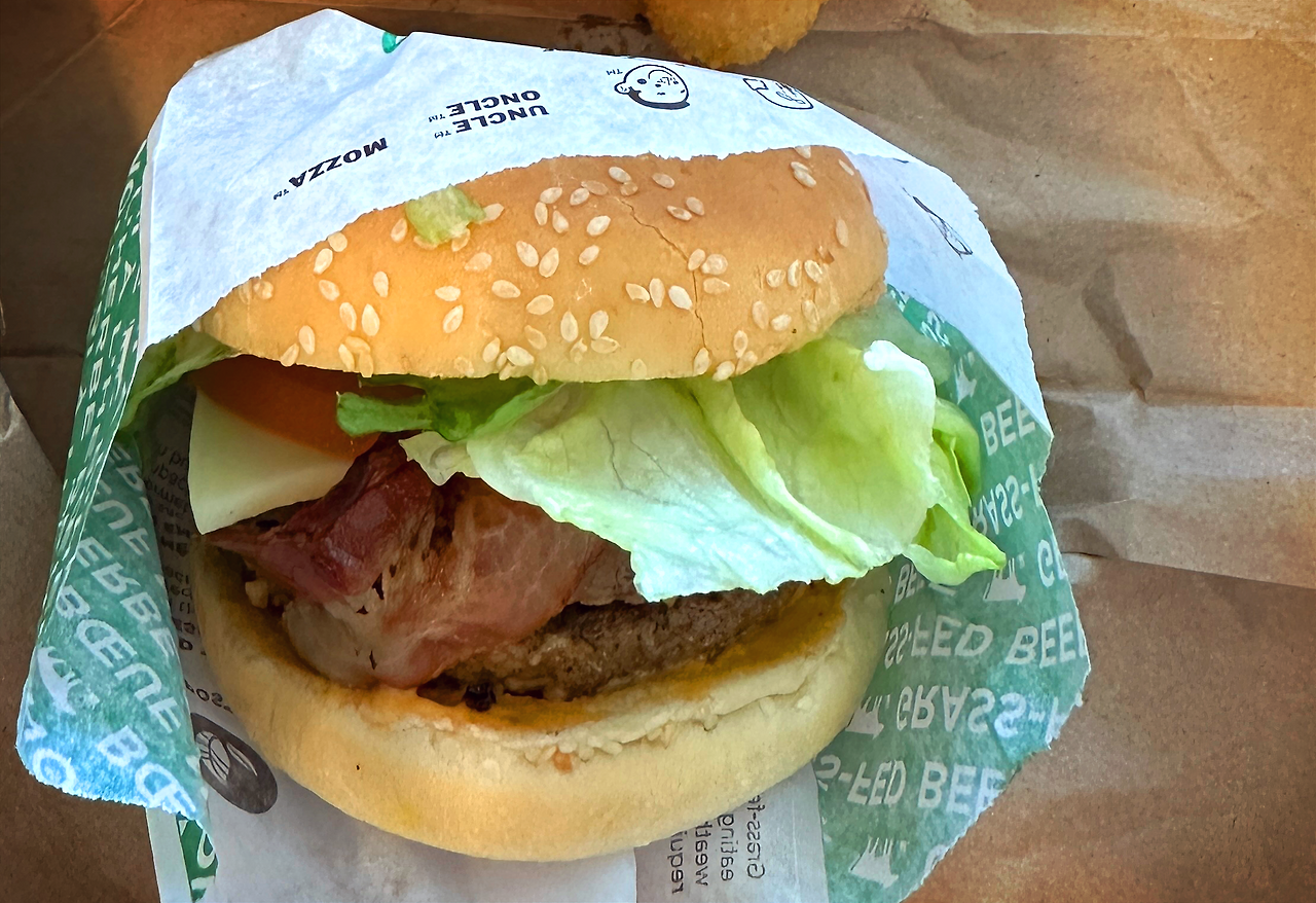 틴 버거였나, 하고 틴 버거도 주문하고, 마지막으로는 캐나다 떠나기 전 마지막 음식으로 공항에서 또 주문했어요. 아마도 모짜버거가 맞는데 지난번 모짜버거는 ‘그냥' 모짜버거라서 모짜렐라가 종잇장처럼 나온 거다, 더블은 시켜야 통모짜가 나오나 보다, 하고 더블모짜버거까지 먹었죠.
