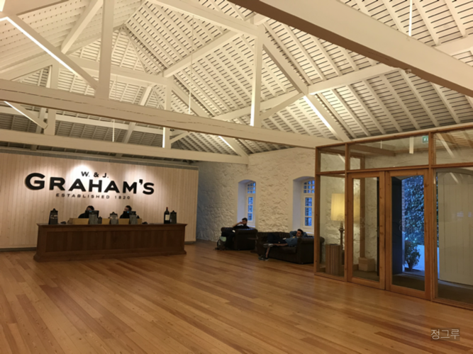 그라함 와이너리에 도착했다. 널찍한 로비에는 사람들이 몇 있었다. 입구에서 와이너리 투어와 시음 패키지를 구매하면 된다. 가장 저렴한 코스를 하려다, 오래 묵은 건 뭔가 고급진가 싶어서, 이제 오면 언제 이곳을 또 오겠나 싶어 조금 무리해서 30년 묵힌 포트와인이 포함된 코스를 골랐다.