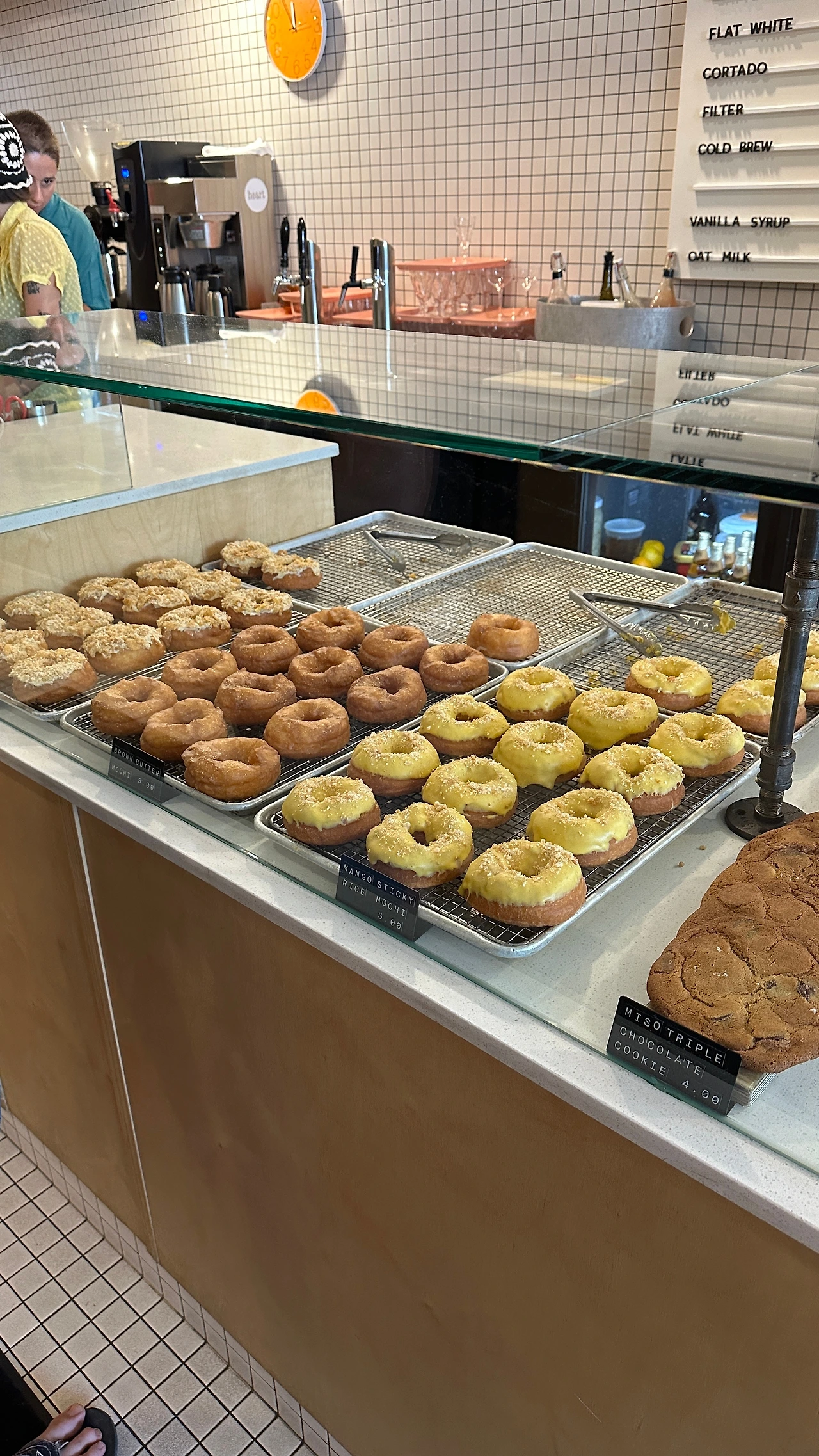 치킨과 팬케이크, 그리고 달달한 소스가 궁합이 너무도 잘 맞았다. 메이플 시럽을 베이스로 한 섬세한 맛의 소스를 부어 바삭바삭한 치킨과 부드러운 팬케이크를 같이 먹어 보면? 와. 너무나 맛있다. 투박하다기보다는 음식을 맛있게 제공하려고 공부를 한 것 같은 소스 맛이었다. 다른 캐나다 친구로부터 이곳 '모찌 도넛(Mochi Donut)'이 맛있다는 추천도 들었던 터라 몇 개 사 왔다.