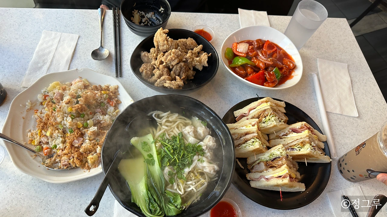 크게 기대 안 했는데, 음식 생긴 것도 그렇게 특별하지 않은데 맛이 좋았다. 고기로 만든 참치같이 생긴 무언가가 왜 이렇게 맛있는지. 밥과 같이 먹으니 너무 잘 어울렸다. 치킨도 빠삭빠삭하고 부위도 내가 좋아하는 부드러운 부위여서 좋았다. (생각해 보면 캐나다에서 먹은 튀김들이 대체로 참 맛있었다.) 소시지볶음은 쏘쏘. 심심하게 생긴 샌드위치도 생긴 것보다 꽤 괜찮고. 굳이 주문한 국수는 국물과 만두는 괜찮았지만 면이 맛이 없었다.