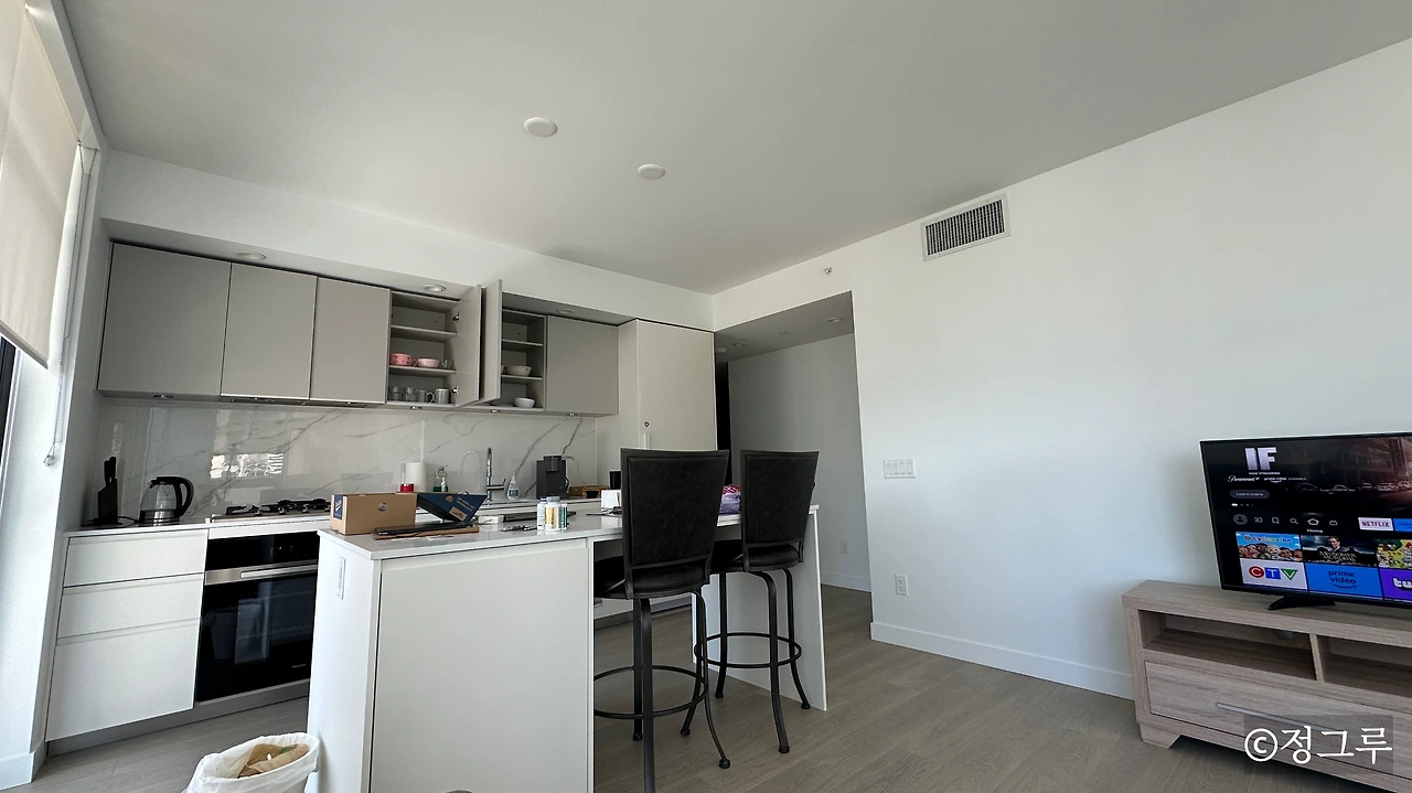 나는 다른 일정이 없으니 끝내주게 늦잠을 자고 잘 일어나서 어제 먹다 남은 비비큐치킨을 마저 뜯었다. 어째 비비큐치킨이 캐나다 버전이 더 맛있는 것 같냐. 향긋하고 바삭한 튀김옷과 잘 어우러지는 부드러운 속살. 음~하루 지났어도 참을 수 있다. 한국 비비큐보다 좀 더 매콤하다. 치킨무가 없어 아쉽다 생각했는데 에어비앤비 베란다 유리를 통해 비비큐 치킨무가 보였다. 무 색깔로 봐서 누군가 한참 전에 놓고 간 것 같았다. 절대 뜯고 싶지 않은 낯선 한국인의 흔적을 뒤로하고 지난번 브런치 맛집 데얼데얼에서 사 온 모찌도넛도 하나 마저 뜯었다. 음. 오늘 먹으니까 또 괜찮네. 일어나 얼마 되지 않아 새벽 골프를 끝내고 돌아오고 있는 그의 연락이 왔다. 1층에서 합류하기로 하여 대충 준비하여 바로 내려갔다.