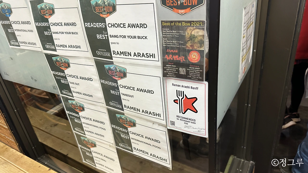 드디어 밴프 다운타운에 도착했을 때, 구글 지도를 이래저래 탐색하다 평점이 높은 한 라멘집을 보고 가슴이 뛰기 시작했다. 여기까지 와서 웬 라멘이냐 싶기도 했지만 그런 발칙한 생각은 3초 정도 후에 증발되어 사라져 다시는 돌아오지 않았다. 댓글에서도 호평 일색. 특히 한국 분들. 그들도 나처럼 입맛 향수병을 겪었으리라. 다소 과장되게 만족하는 그들의 후기를 보며 나의 기대도 한껏 높아졌다.