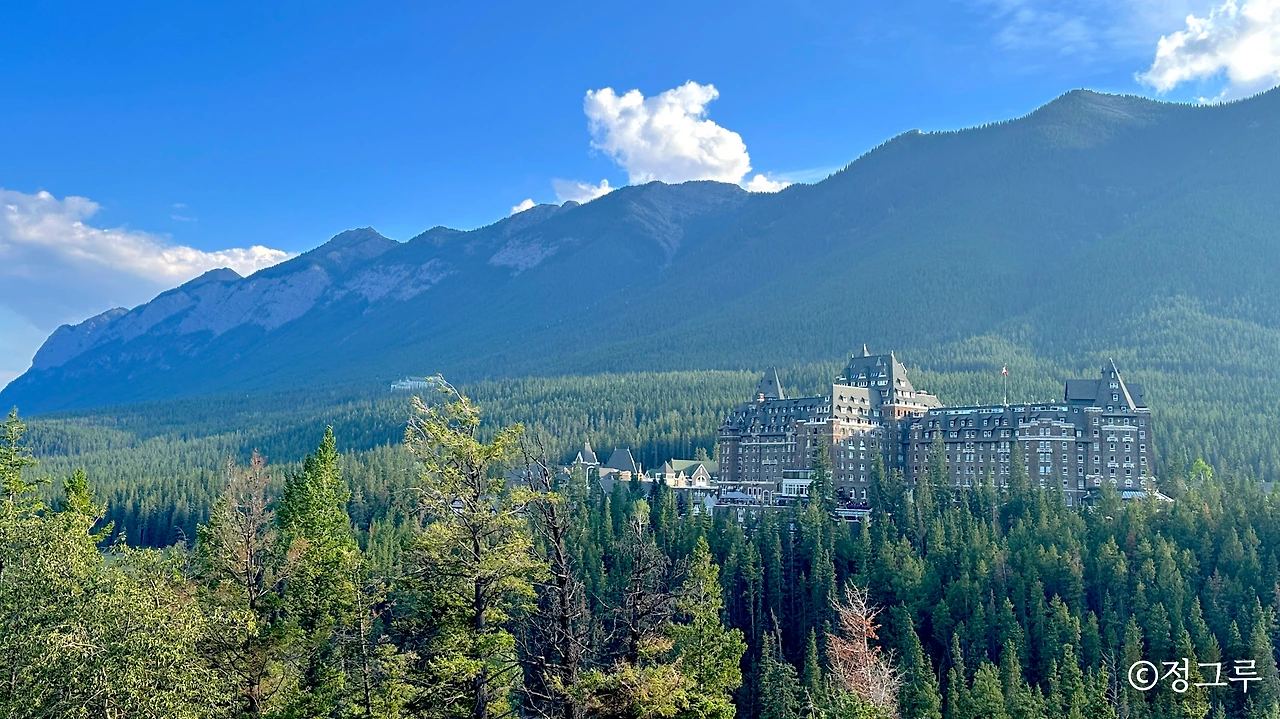 그래도 한눈에 본 호텔은 참 아름다웠다. 동부 퀘벡에 가면 이런 건물이 왠지 많을 것 같다는 막연한 생각을 했다. 왼쪽을 보니, 밴프 곤돌라도 보이고, 그 아래쪽의 온천도 작게 보였다. 내일 아침에는 일찍 일어나서 곤돌라에 갔다가 온천 개장시간에 맞춰서 온천에 가자고 다짐했다. 떠나자는 눈짓이 동시에 허공에서 만나며, 아쉬움 없이 다음 장소로 빠르게 이동했다.