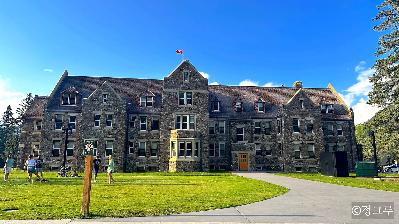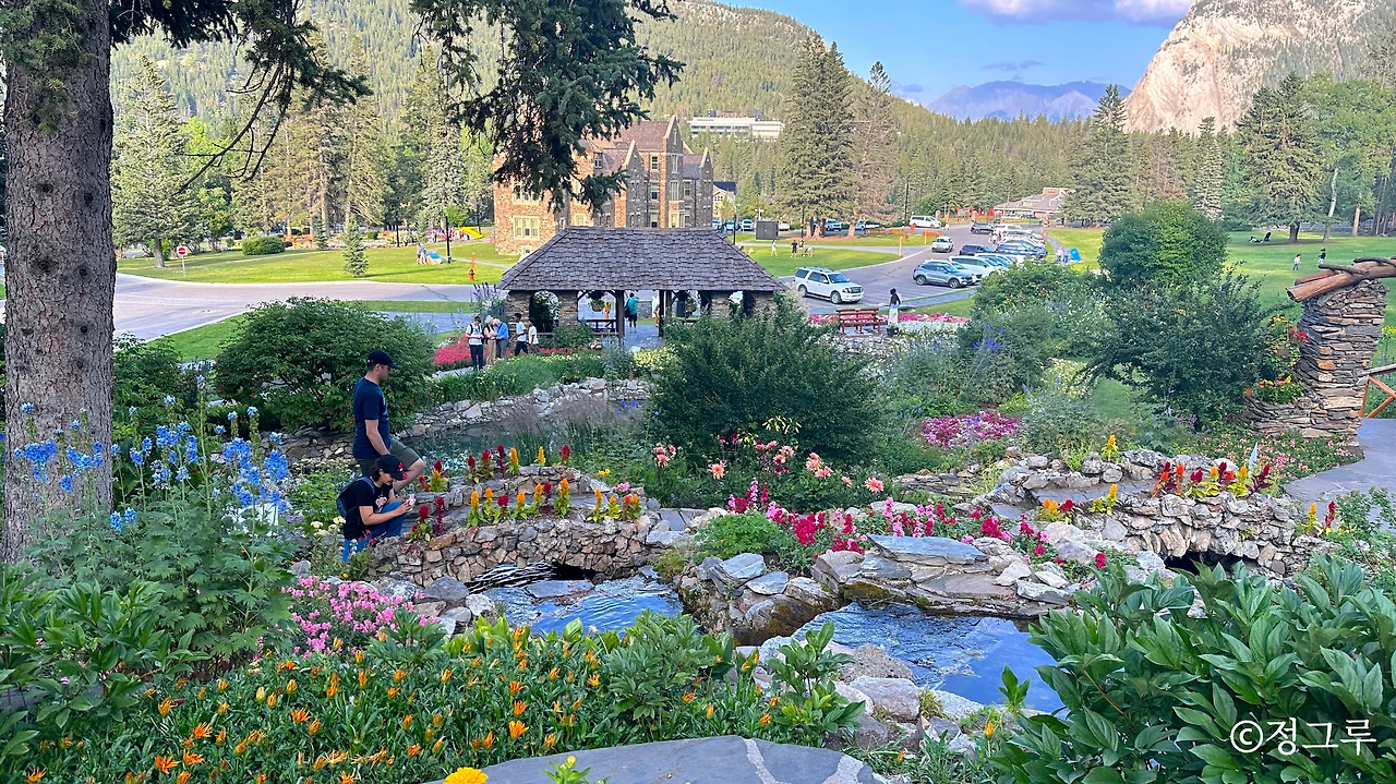 앞서 두 군데는 밴프 다운타운에서 5~10분 정도 떨어져 있다. 이제 다시 다운타운으로 돌아왔다. 아름다운 건물과 정원을 구경할 수 있는 곳. 알고 보니 그 건물이 공무원들의 건물(연방정부 사무소)이라던데.