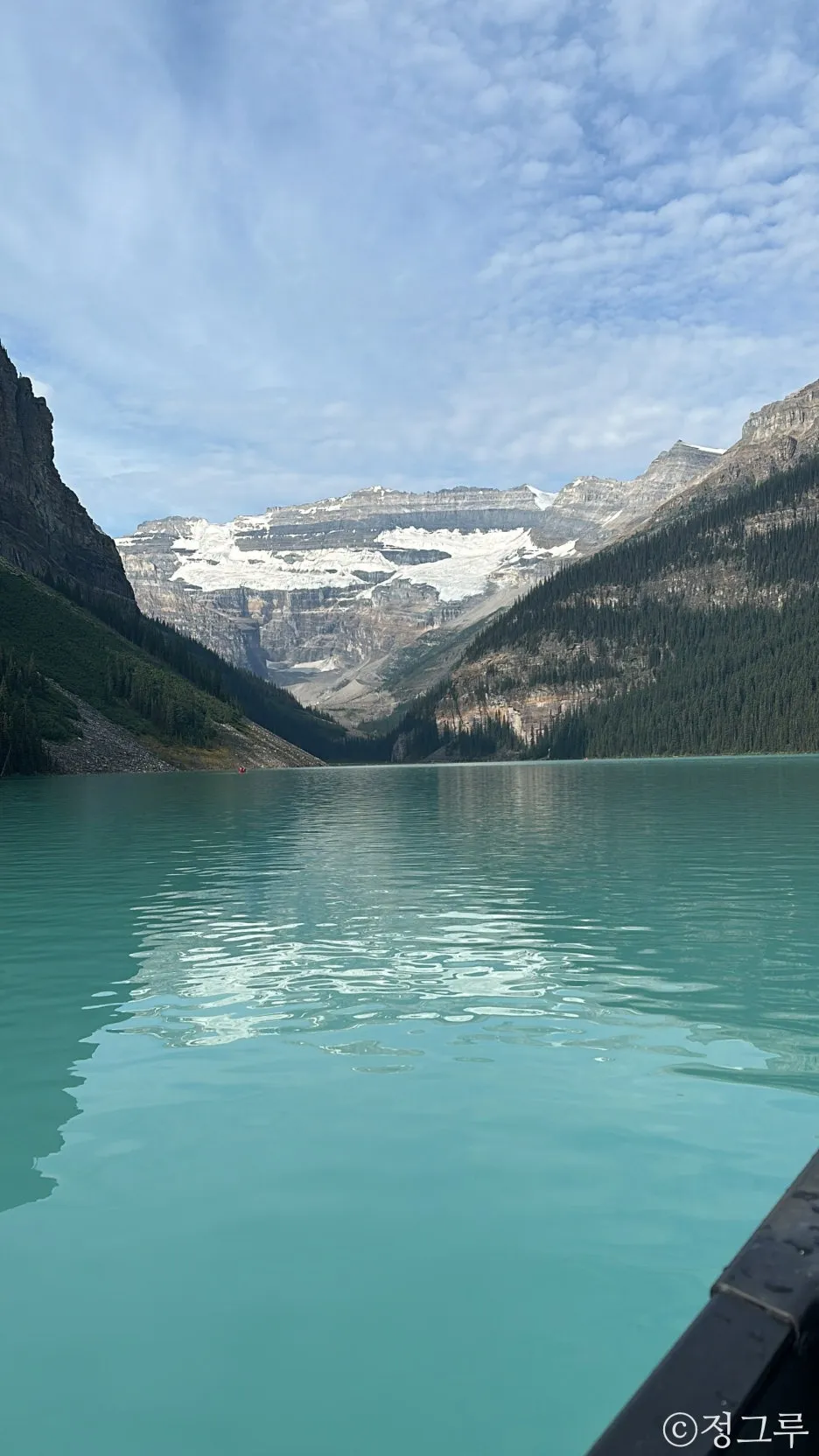 차분하고 진한 레이크 루이스를 감상하다 해가 쨍하게 뜨는 순간이 있었다.