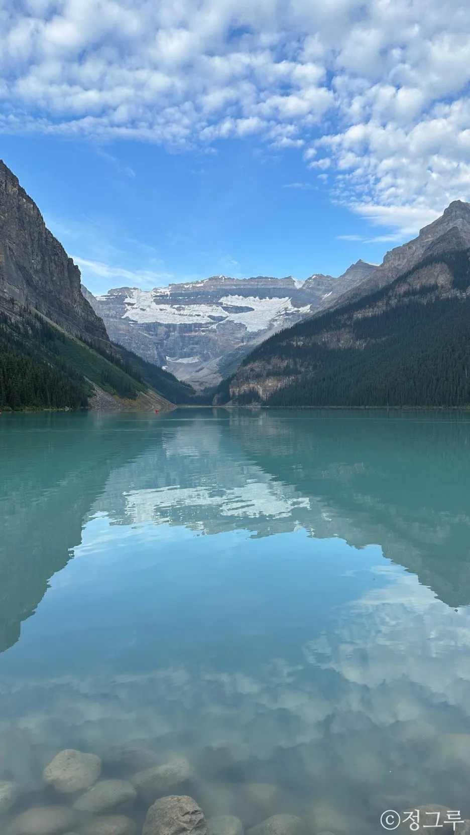 레이크 루이스 주변을 걸으면 이렇게 수심 얕은 곳들을 볼 수 있는데, 이 호수가 탁하긴 해도 매우 맑아서 강 내부가 잘 보이는 점이 또 신기한 포인트였다.