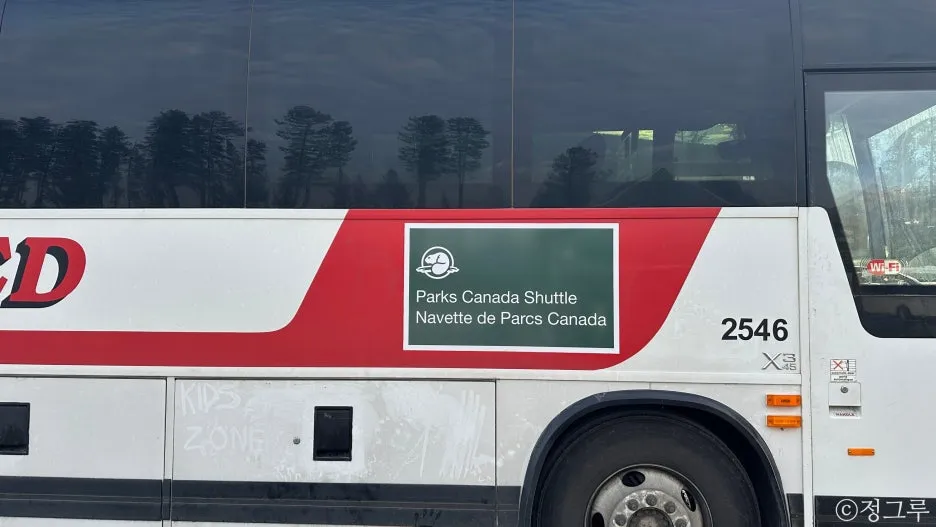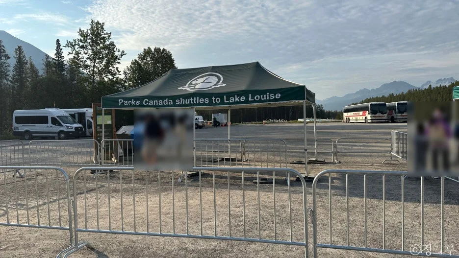 이게 공식 파크 캐나다의 셔틀 줄 서는 곳. 아까 받은 종이를 들고 줄을 서 있으면 된다.