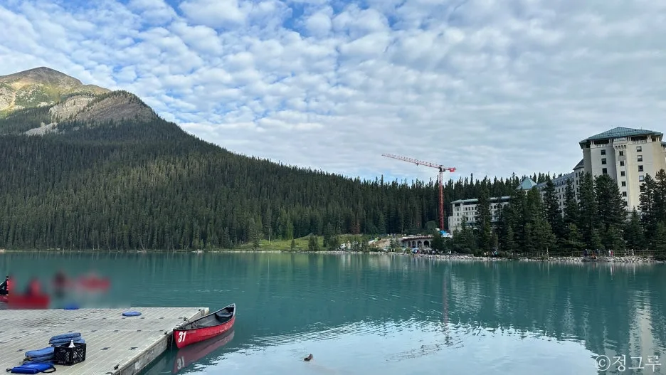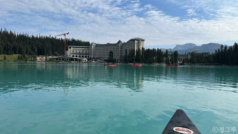 반대편 호텔뷰는 공사 중이어서 공사 소리가 좀 났던 기억이 있다. 호텔 건물 자체는 여기서 봤을 때 유난히 고풍스럽다거나 너무 아름다운 느낌은 아닌 것 같다. 어느 사진 속에서였는지 레이크 루이스랑 같이 찍혀 나올 땐 진짜 멋지다고 생각했는데.