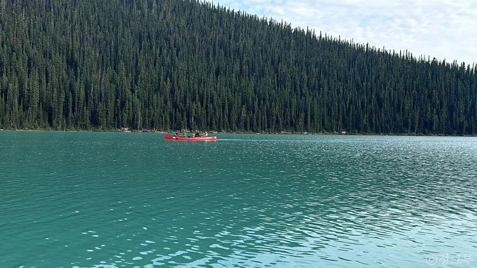 아무래도 레이크 루이스의 유명세가 대단하다 보니 가장 비싼 것 같고, 모레인도 접근이 워낙 까다롭고 물 색이 신비로우니 비싼 것 같다. 근데 이번 여행에서 햇빛 쨍쨍한 에메랄드 레이크가 숨 막히게 아름다웠던 기억이라 줄만 길지 않으면 난 에메랄드 레이크에서 카누를 타는 것도 추천하고 싶다.