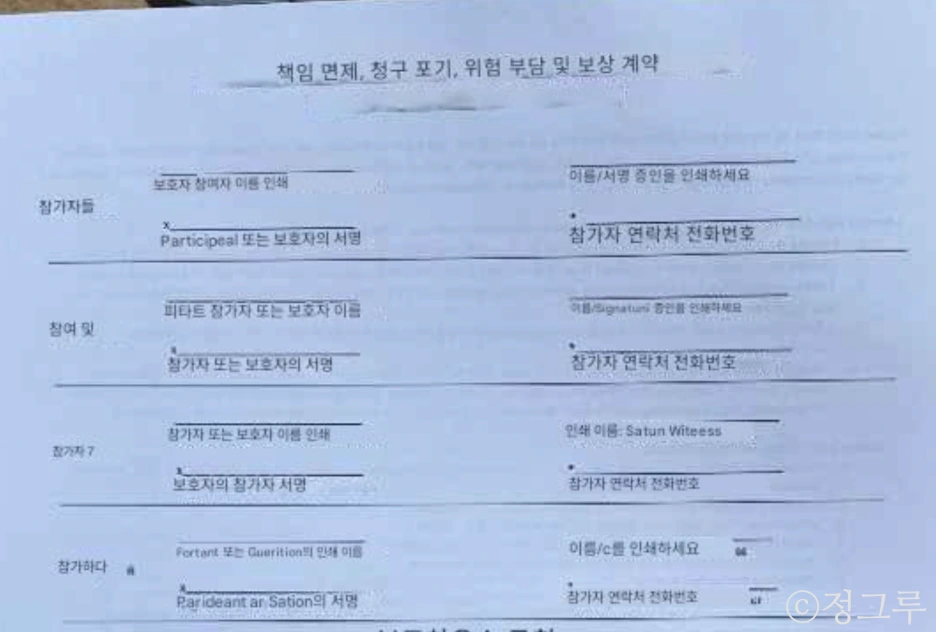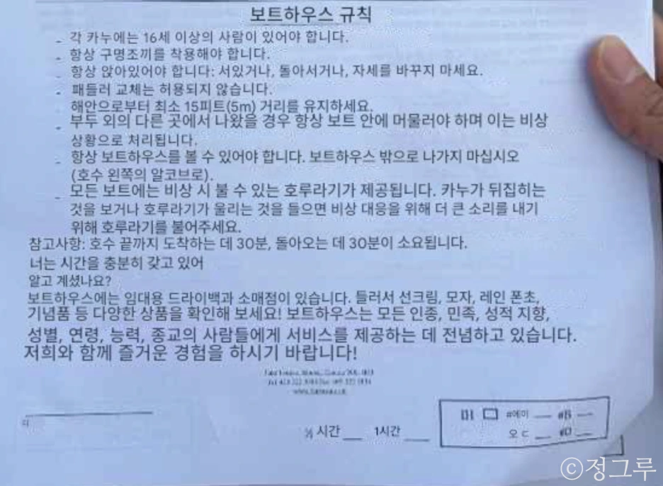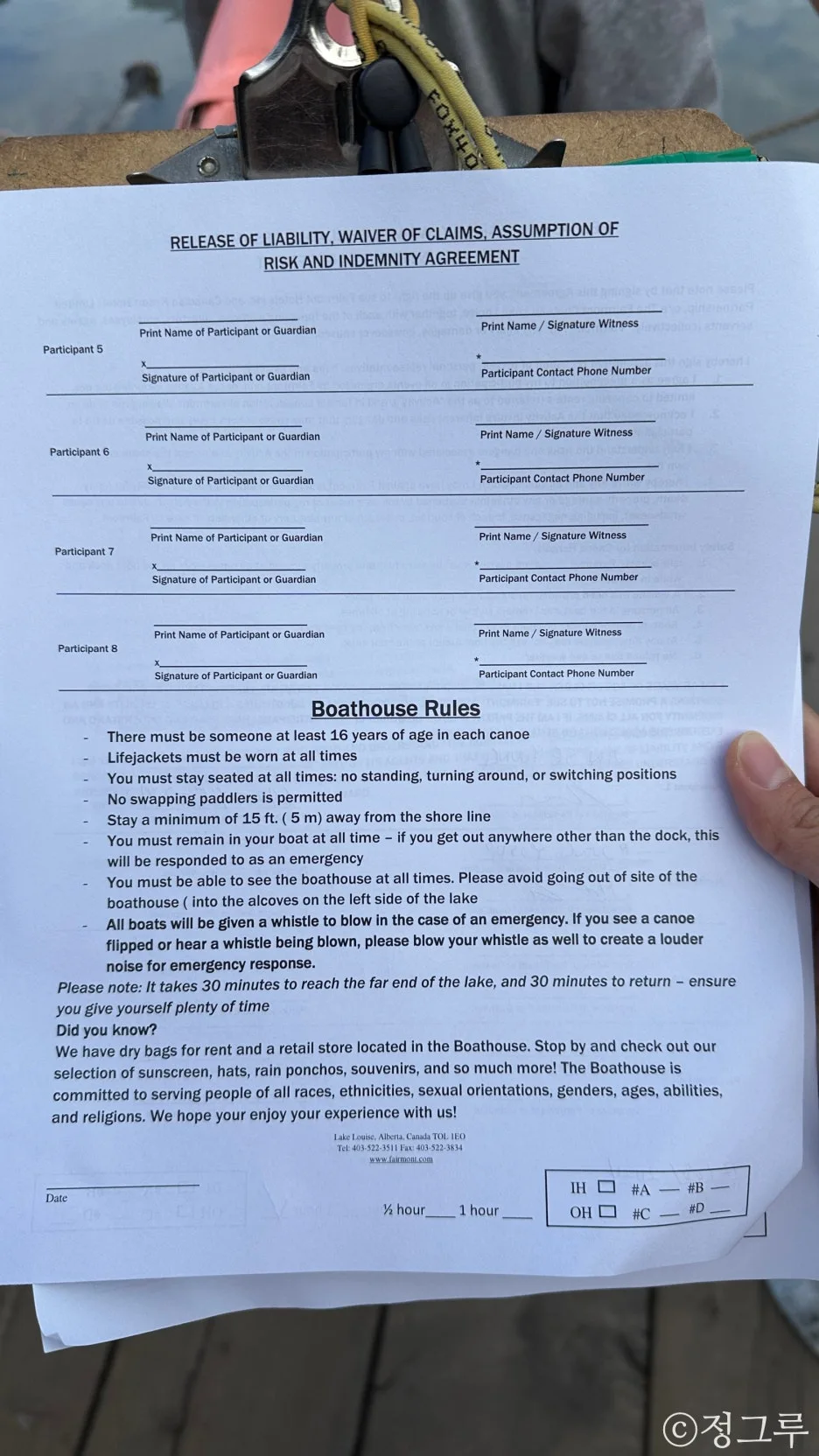 카누 탑승에 가까워지면 이렇게 종이를 나누어 준다. 작성해서 제출하면 된다.