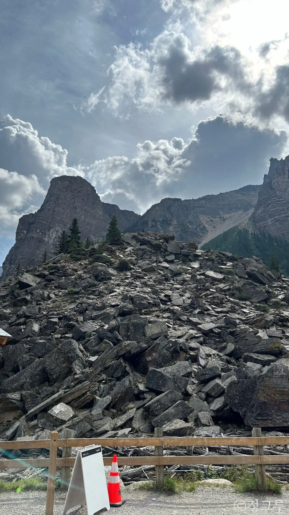 입구 쪽에서 왼쪽으로 가면 록파일, 즉 위에 올라가서 모레인을 볼 수 있는 곳이 있다.