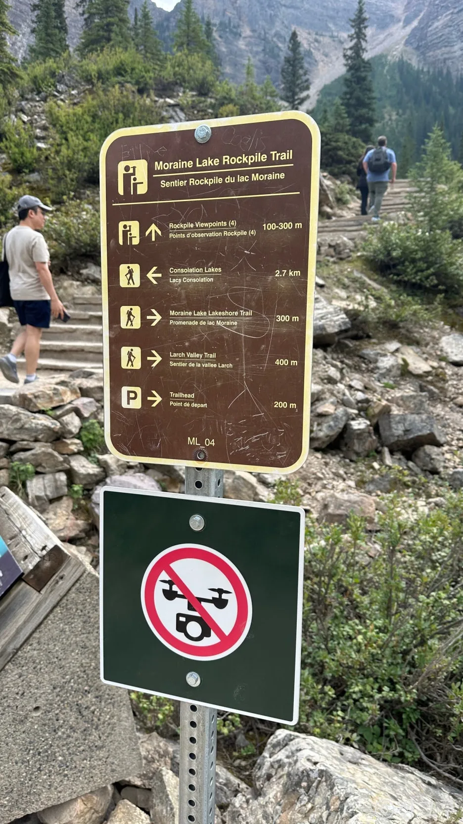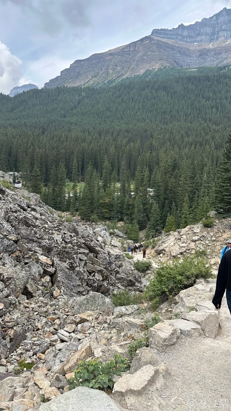 너무너무 예쁘고 실제 같지 않아 감탄이 나면서도, 사람들이 너무 많고 와글와글 많이 시끄러워서 감상을 많이 깼다. 분명 아까 산책을 할 때는 모레인이 너무 좋다고 생각했는데. 사진은 위에서 찍은 사진들이 쨍하고 예쁘지만 좋기는 아래에서의 산책시간이 훨씬 좋았다. 시끄럽고, 사진을 찍기도 힘들어 기가 빨렸다.