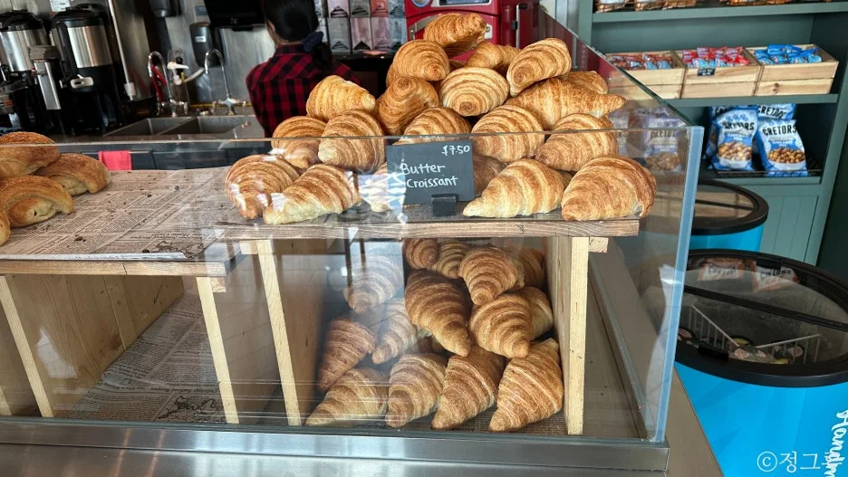 약 육천 원? 짜리 따뜻한 라떼 한 잔을 주문했다. 줄을 기다리면서 내가 좋아하는 크루아상을 먹을까 말까 먹을까 말까 계속해서 고민했는데, 맛있는지 맛없는지 먹어봐야 하지 않겠냐는 내 심장과 달리 머리에서 크루아상과 7,500원은 어울리지 않는다는 소리가 계속해서 나왔다. 겉보기에 아주 맛있어 보이지 않기도 했고...