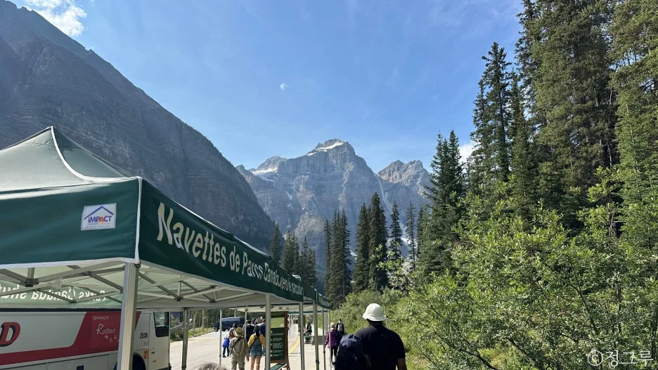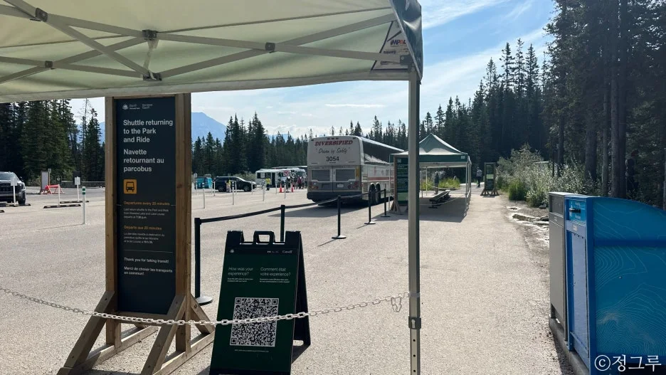 모레인으로 가는 셔틀 타는 곳과 주차장으로 가는 셔틀이 다 있으므로 잘 확인하고 타야 한다.