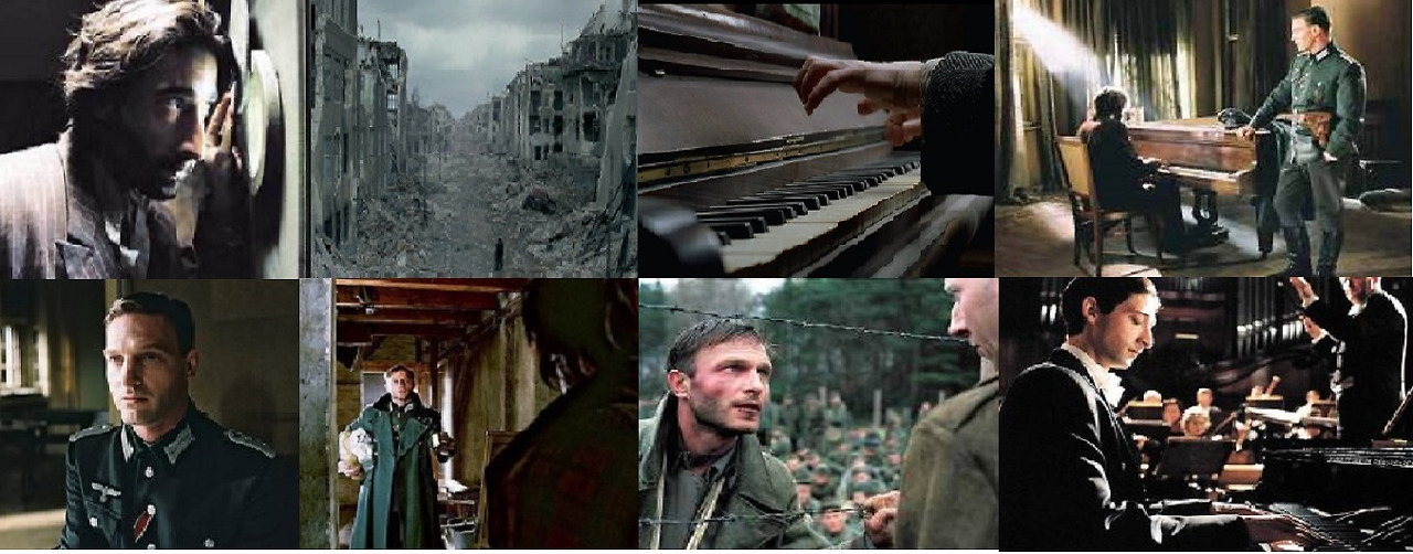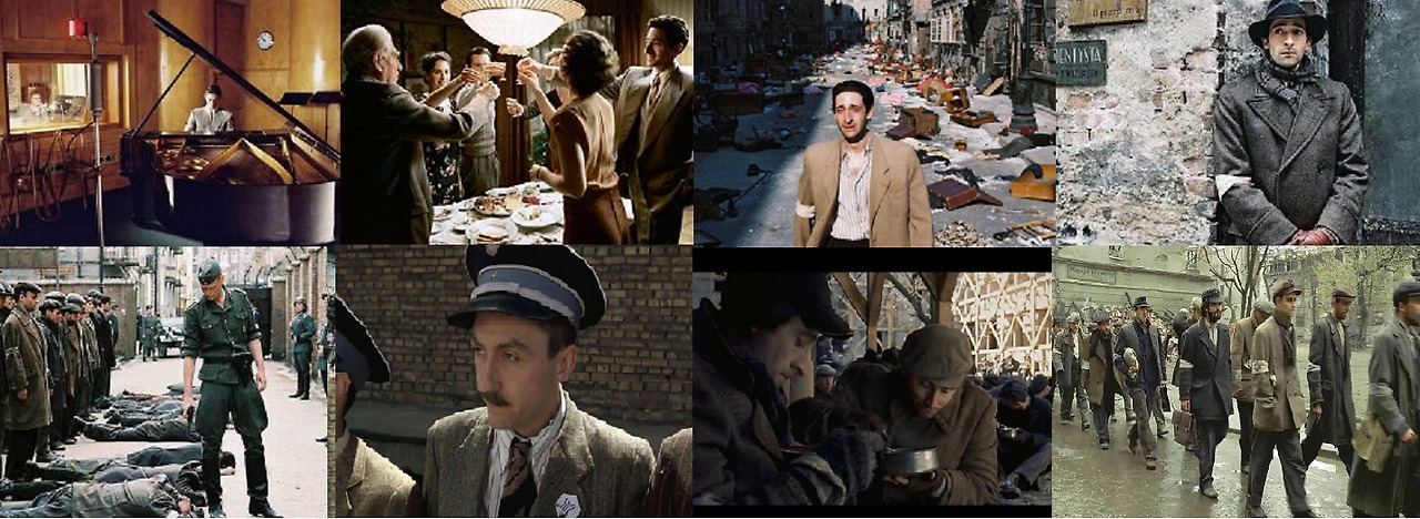 유대인이라는 이유로 슈필만(애드리언 브로디)은 독일군의 폭격 후 가족과 함께 게토라는 특정구역의 수용소에서 생활하게 됩니다. 그곳에서 결국 처분대상으로 기차를 탄 가족과 헤어지게 됩니다. 슈필만은 당시 피아니스트로 유명세가 있던 터라 그를 알아본 지인의 도움으로 혼자 겨우 목숨을 유지하게 됩니다.