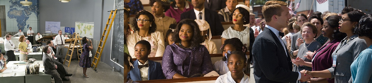 영화는 타고난 수학적 능력을 가진 캐서린, 도로시, 메리 3명의 흑인 여성들이 NASA의 최초 우주궤도 비행 프로젝트를 함께 하며 겪게 되는 이야기를 다루고 있습니다. 궤도를 직접 계산해야 하는 캐서린은 유색 인종으로서 공용커피조차 마실 수 없고 업무 공유조차 꺼리는 동료들과 함께 지내야 합니다. 심지어 화장실을 사용하기 위해 하루에도 수차례 유색인종이 사용할 수 있는 건물을 찾아다녀야 합니다. 모든 생활 곳곳에서 꼼꼼하게 차별을 당합니다. 도로시 역시 부재하는 주임의 업무와 직원들 관리를 하지만 승진은 꿈도 꾸지 못합니다. 미소 냉전구도 속에서 러시아와의 우주 개발 경쟁에 혈안이 된 미국(그들에게 우주 개발은 하나의 비즈니스), 능력이 우선시되어야 함에도 흑인여성 엔지어는 불가능하다며 NASA의 온갖 규정을 들이밀지만, 메리는 흑인여성 최초로 NASA 엔지니어를 꿈꾸며 그 단단한 벽을 향해 나아갑니다.