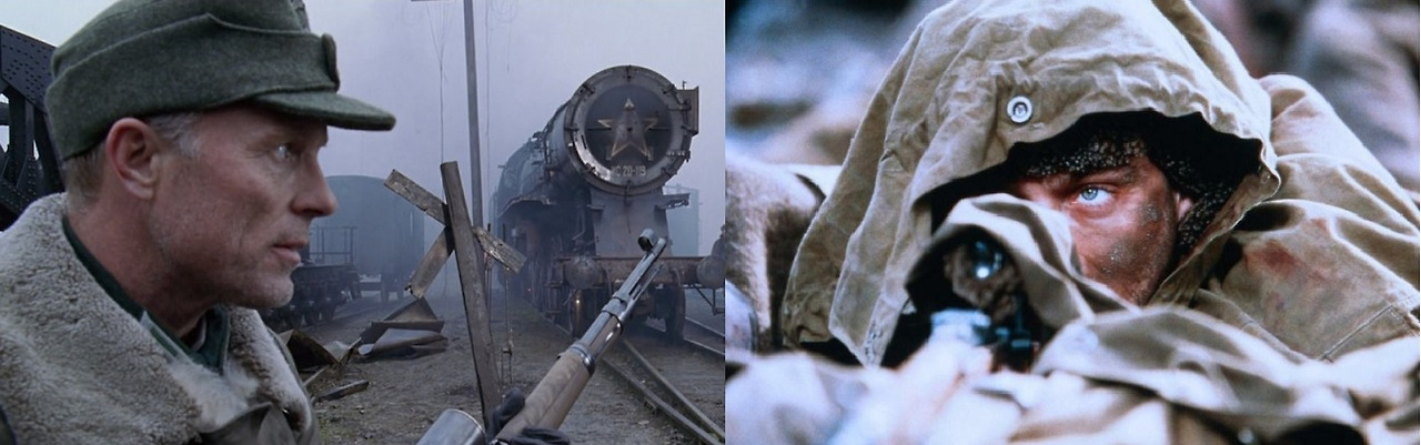 다닐로프의 계획대로 바실리는 나치 장교들을 처단하는 저격수가 되어 어느새 전설적인 소련의 영웅이 됩니다. 바실리는 스탈린그라드행 군사호송열차에서 잠시 본 타냐(레이철 와이즈)를 만나 사랑을 하게 되고, 그녀를 향한 다닐로프의 사랑이 더해지며 살벌하고 한 치 앞을 알 수 없는 전쟁 속에서도 각자만의 새로운 삶을 꿈꿉니다. 바실리의 놀라운 사격술로 독일군의 사기가 떨어지자 독일도 바실리를 제거하기 위해 독일군 최고의 저격수 코니그 소령(에드 해리스)을 파견하면서 두 스나이퍼의 두뇌 싸움과, 숨 막히는 심리전이 벌어집니다.