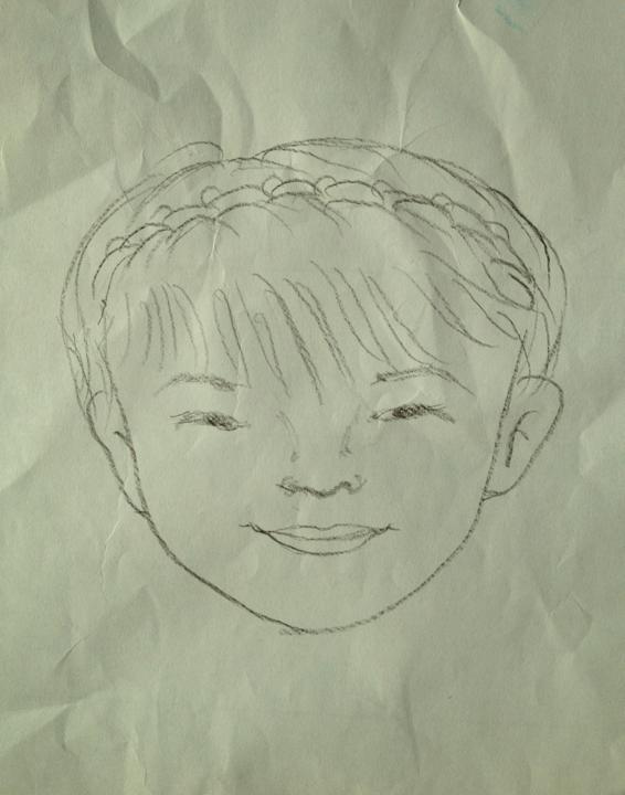 아들 얼굴 연필그림. 원래는 더 귀여운 상인데 내 부족한 실력이 담지 못한다ㅠ