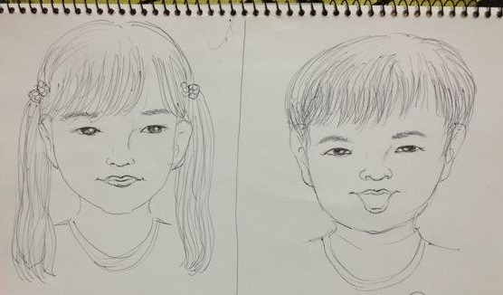 아들이 먼저 연필로 내 얼굴의 중심을 잡기 시작한다. 난 일단 아들의 얼굴을 찬찬히 들여다본다. 녀석 볼이 터지겠다. 이제 그만 살찌고 키 좀 쑥 커야 할 텐데. 눈썹도 안 보이게 앞머리를 꼭 저렇게 길러야 하나? 아들의 얼굴을 바라보고 있자니 오만가지 생각이 든다.