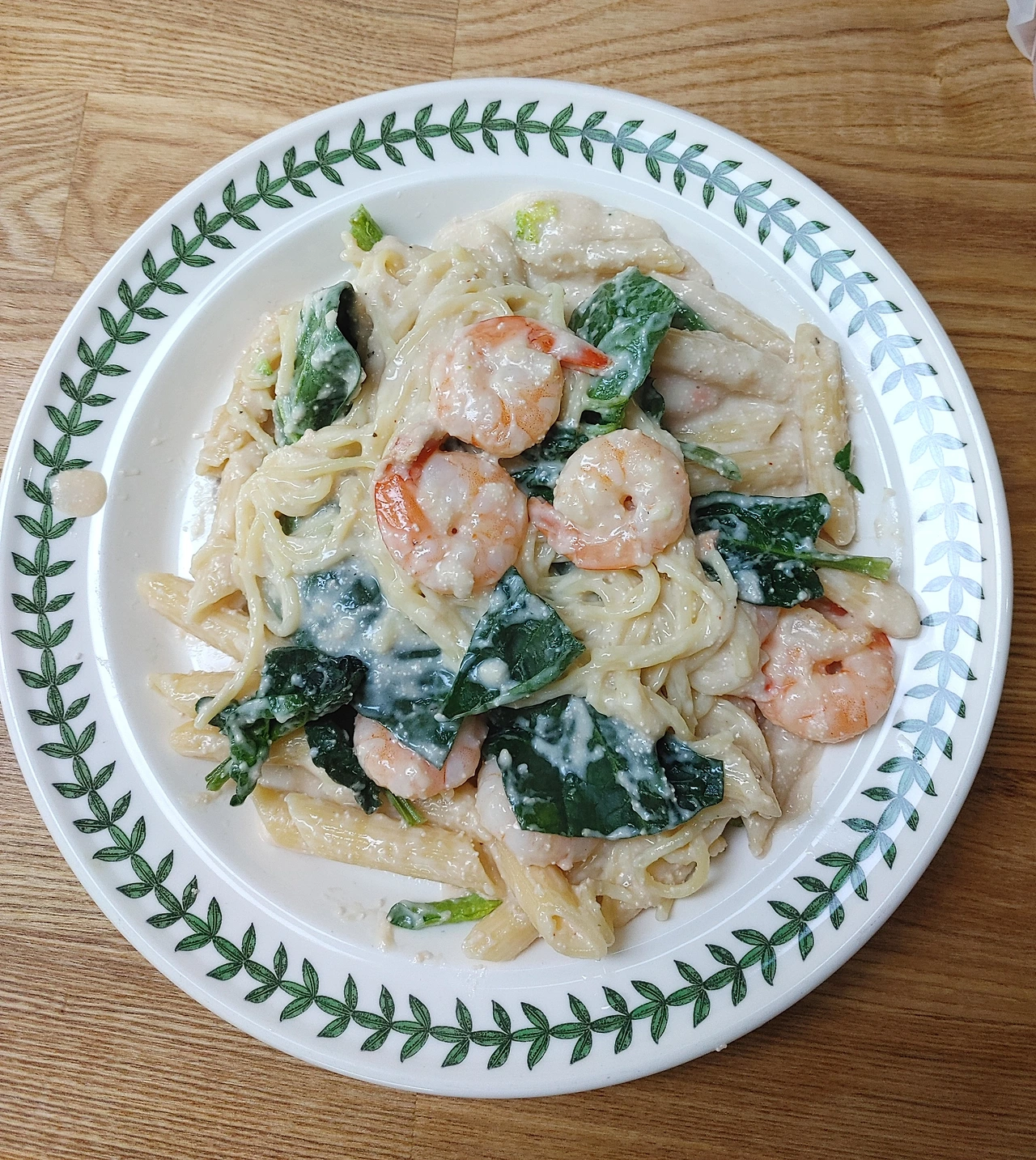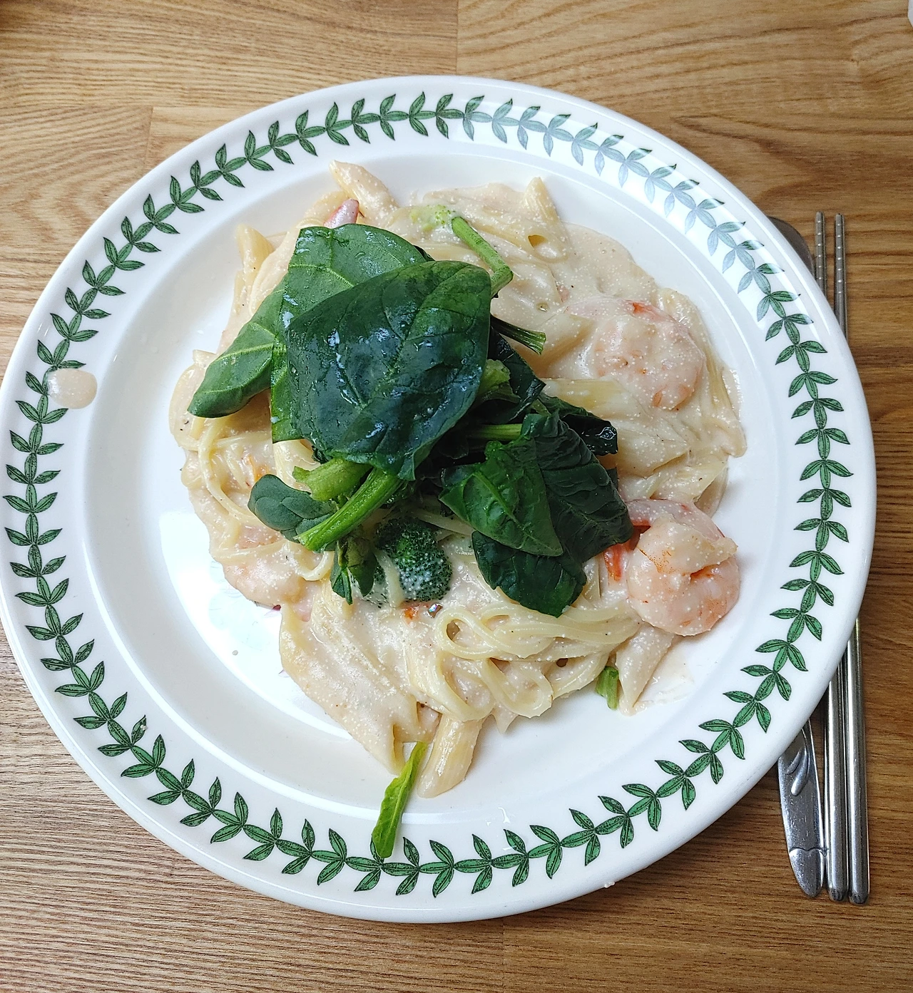 요리를 즐겨하는 남편이 뚝딱 만들어낸 명란 크림 파스타는버터와 우유로 만든 크림 베이스에 명란과 새우를 넣어 완성한 것이다. 마지막에 생시금치를 올려둔 것이 시금치를 데쳐 먹기만 하는 내 눈엔 영, 마뜩잖았다. 그러나 파스타 면을 휘휘 저어 섞으니 그 온기에 시금치의 숨은 재우고 아삭함은 살리는 고수의 비법이 숨어 있었다. 새우와 명란을 아끼지 않은 파스타는 고급 레스토랑에서도 맛보기 어려울 만큼 특별한 맛이었다.