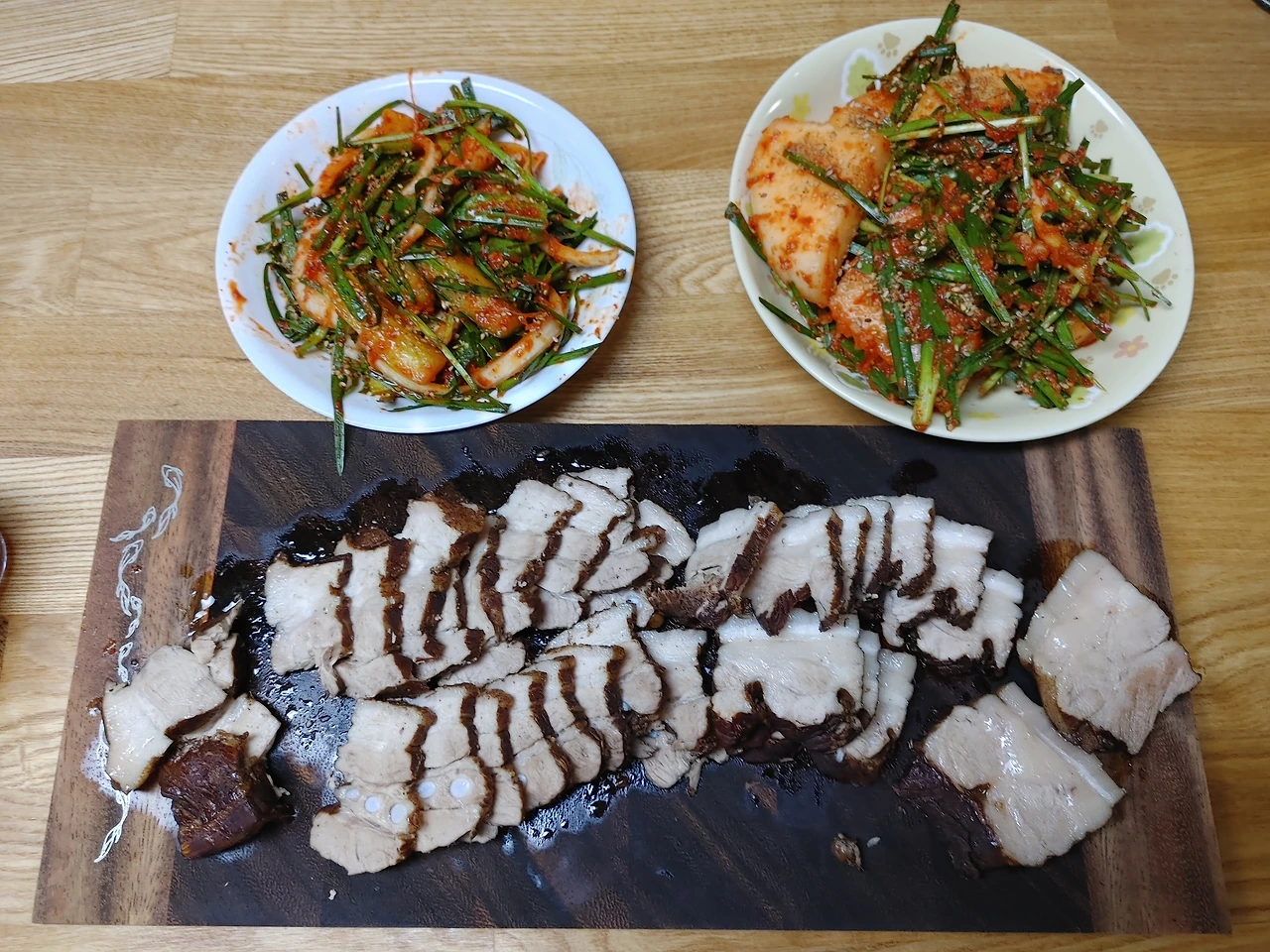 남편과 담근 오이김치와 석박지. 생김치엔 수육이죠^^ by 그루잠