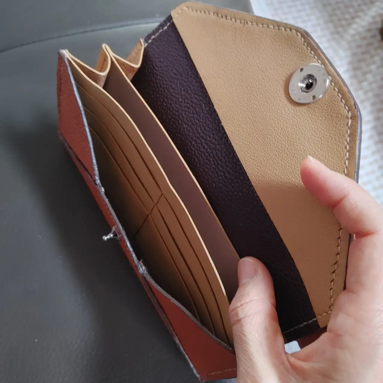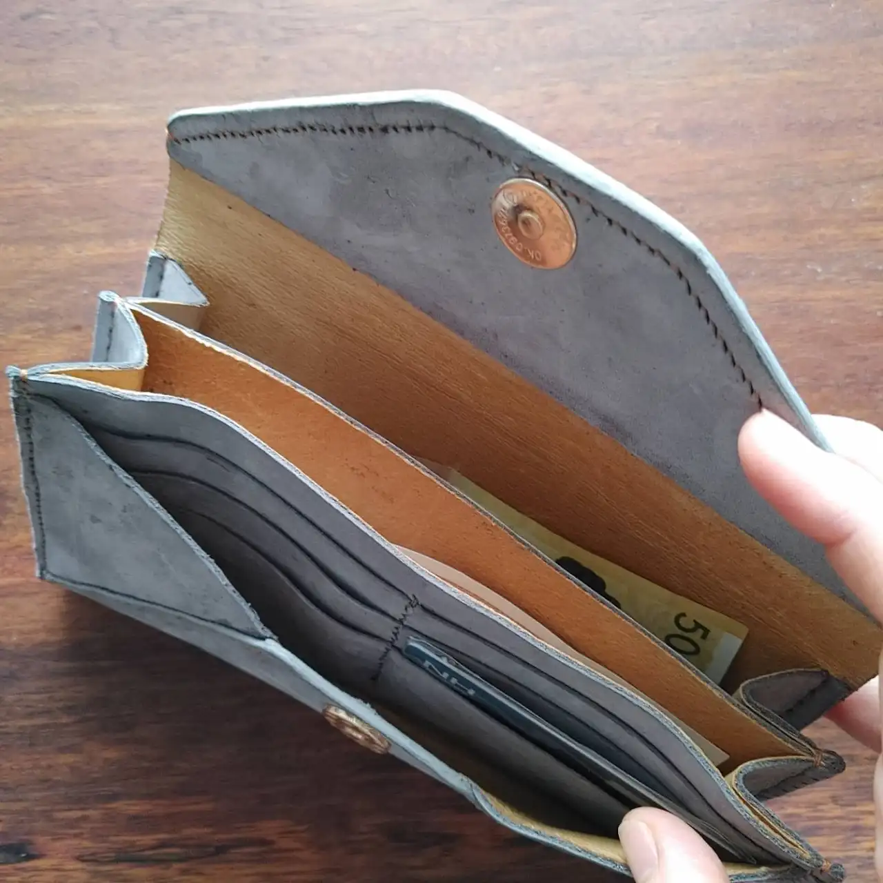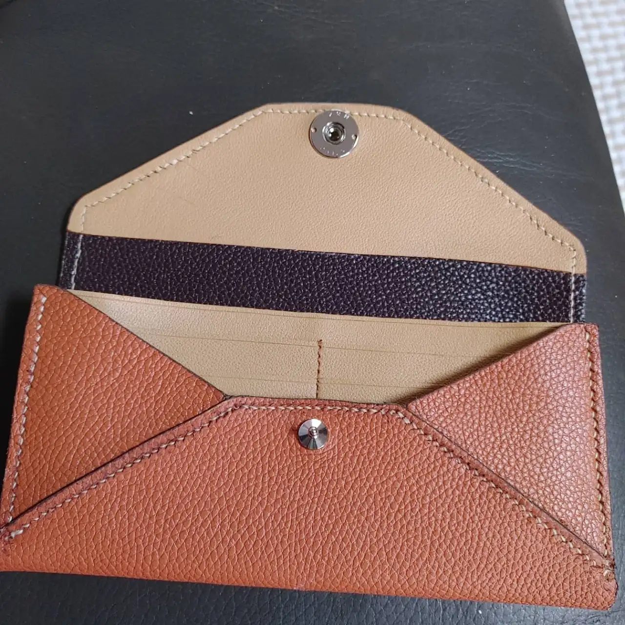 그런데 끝나 지지가 않았다. 연습용으로 만들어 본다던 내 장지갑을 시작으로, 핸드폰 가방, 카드 지갑, 허리띠, 동료의 시계줄까지... 물건을 만들수록 남편의 바느질은 점점 정교해지고 가죽 테두리에 바르는 엣지 코트 마감은 더 부드러워졌다.