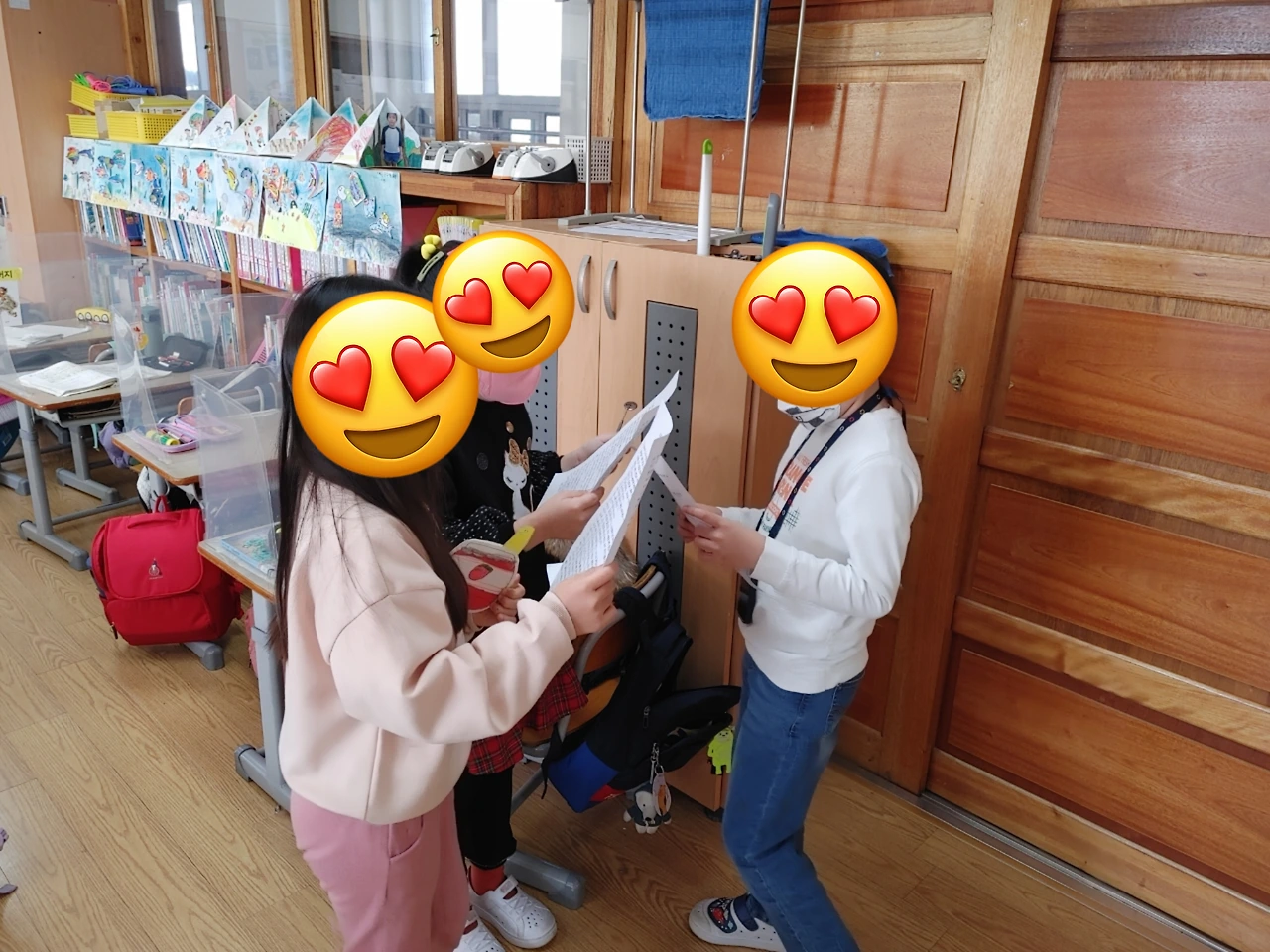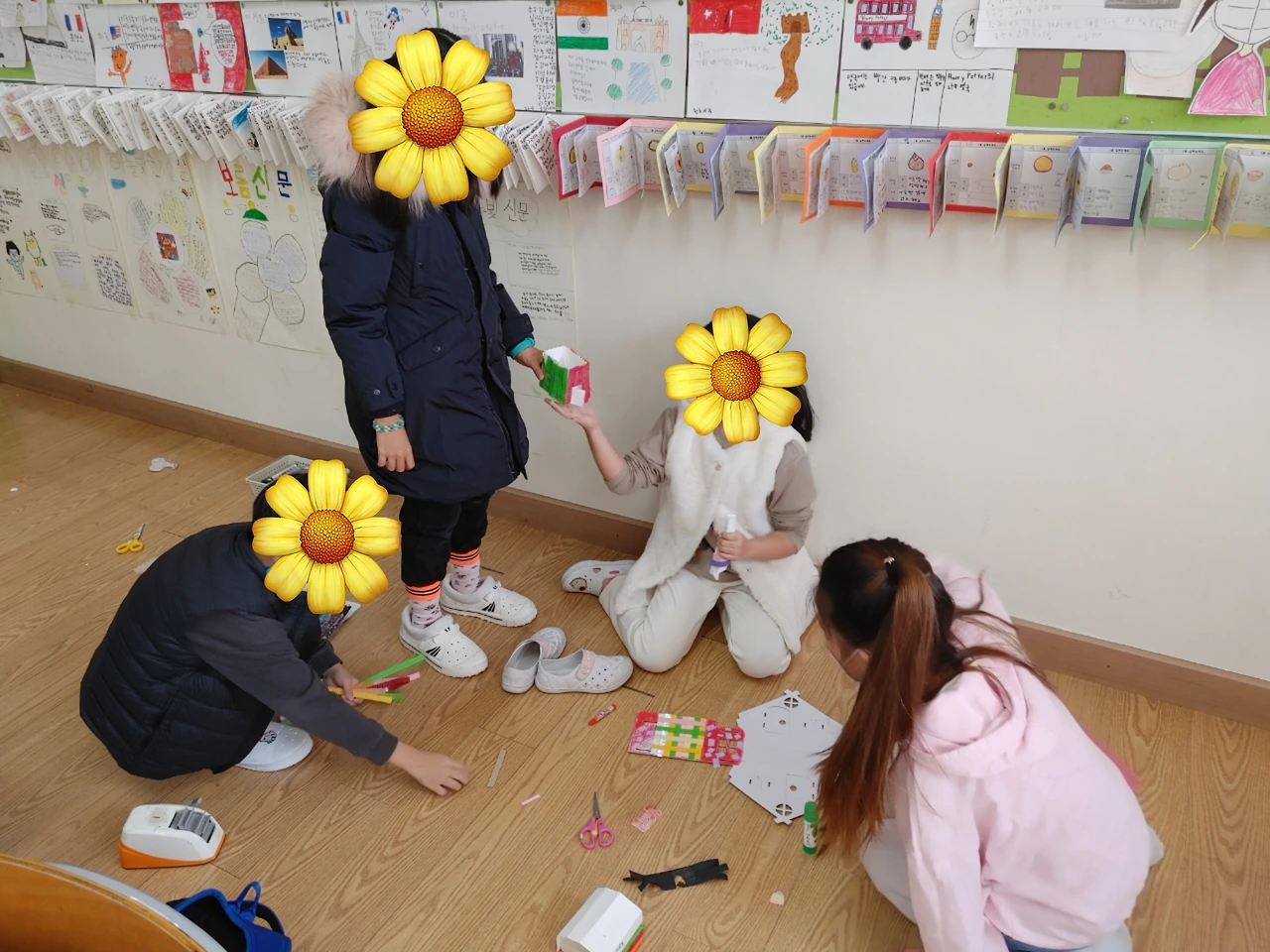 아이들은 이번 주 월요일부터 다음 주에 실시될 학급 학예발표회를 위해 부지런히 연습 중이다. 3~6명으로 팀을 이룬 아이들은 수업 시간에 배운 내용들 중 발표할 영역을 스스로 선택했다. 연극팀, 세계의 민속춤팀, 합동 줄넘기팀, 만들기 작품 제작팀, 그리기 작품 제작팀 등, 팀별로 맡은 프로그램에 대해 팀원들과 의논해 계획하고 연습하는 일련의 과정을 해내는 중이다. 처음에 세웠던 계획이 생각보다 실현하기 어렵거나 더 나은 의견이 있을 때는 수정, 보완도 스스로 한다. 그 과정에는 마음이 맞지 않은 친구와의 갈등, 생각했던 것보다 잘 되지 않을 때 오는 답답함, 다른 팀보다 자기 팀의 진행이 더딘 것만 같은 초조함 등 다양한 아이들의 감정들이 함께 얽힌다.