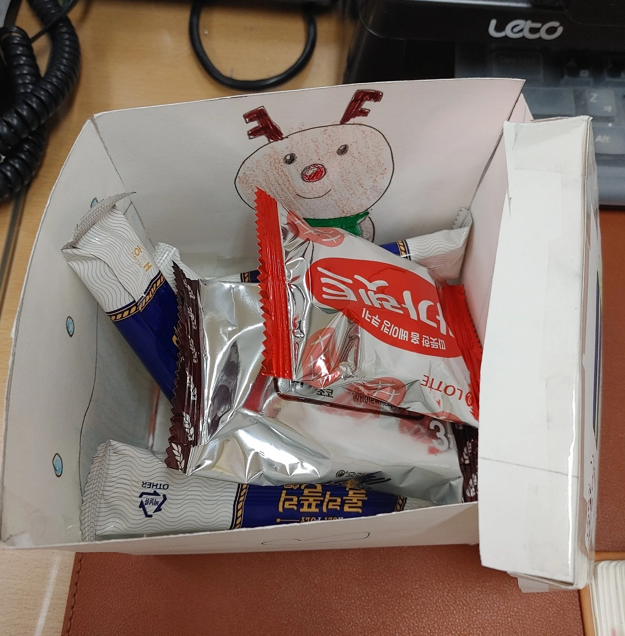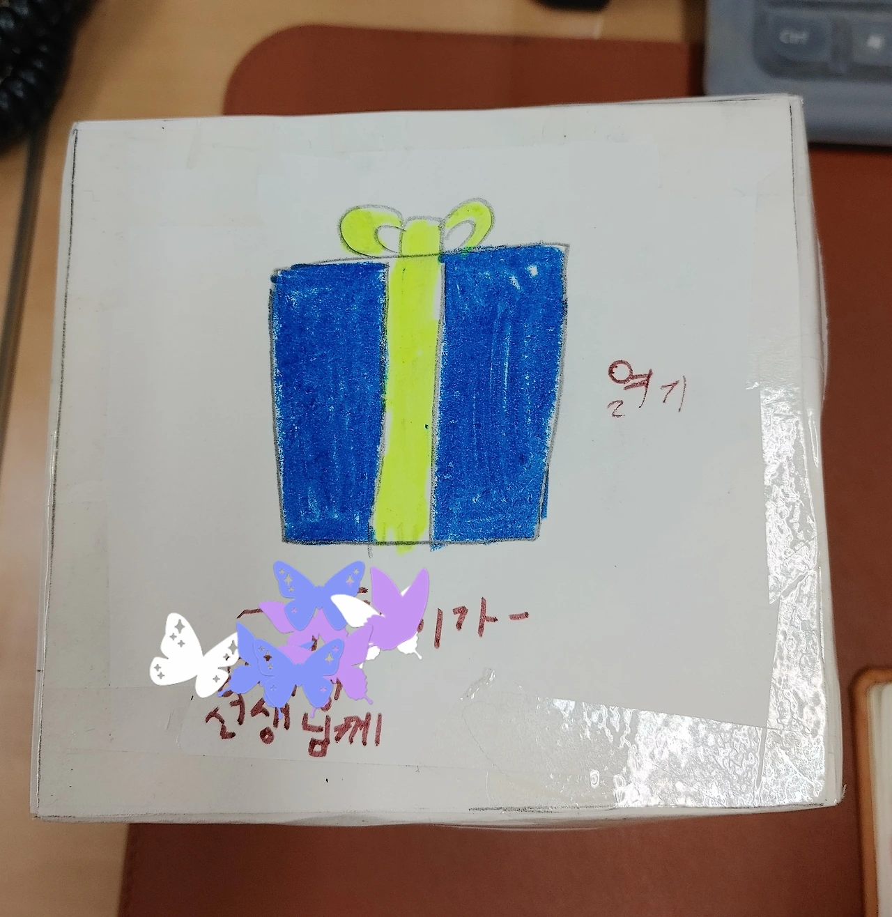 이브날 아침. 우리 반 달래(가명)가 내 책상 위에 크리스마스 선물이라며 상자 하나를 올려놓았다. 열어보니 내가 아이들에게 주고 싶어 했던 달달한 것들로 꽉 채워져 있었다. 너무 고맙지만 내용물은 받을 수 없다는 것에 대해 달래는 다 이해하지는 못하는 듯했다. 누군가에게 주고 싶은 마음에 들인 정성이 바래지 않도록 사진을 찍어 두었다. 아이가 직접 만든 상자와 편지만 받고 내용물을 돌려주면서 달래가 서운해하지 않기를 진심으로 바랐다.