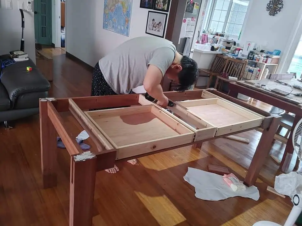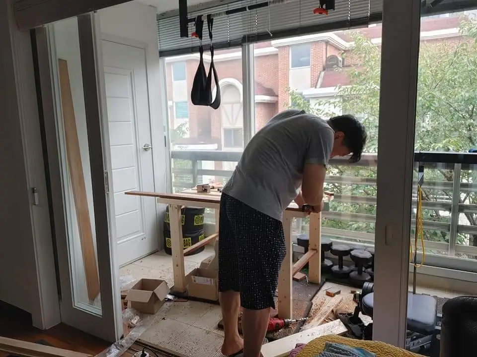 목재를 절단하는 전기톱과 뚜당 거리는 연장 소리, 목재를 문질러대는 사포 소리, 그로 인해 발생되는 온갖 먼지들까지. 저렴한 비용으로 제대로 된 물건을 만들어 준다며 한 번 시작하면 완성하기까지 혼신을 다하는 남편의 열정을, 나는 차마 말릴 수 없었다.