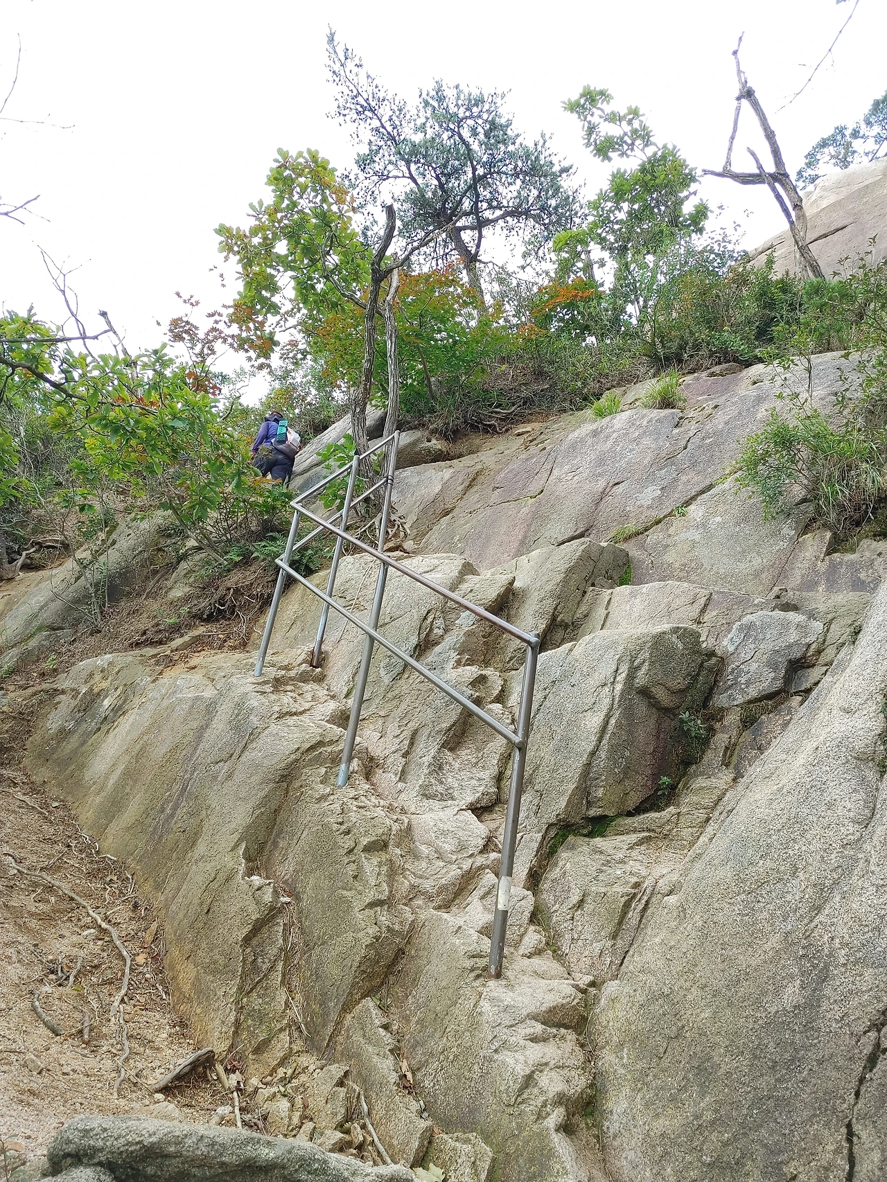 의상봉 오르는 길은 급경사의 화강암석을 두 손, 두 발 다 써서 올라야 하는 난코스예요. by 그루잠