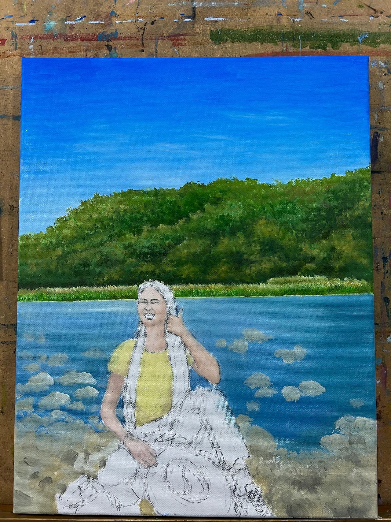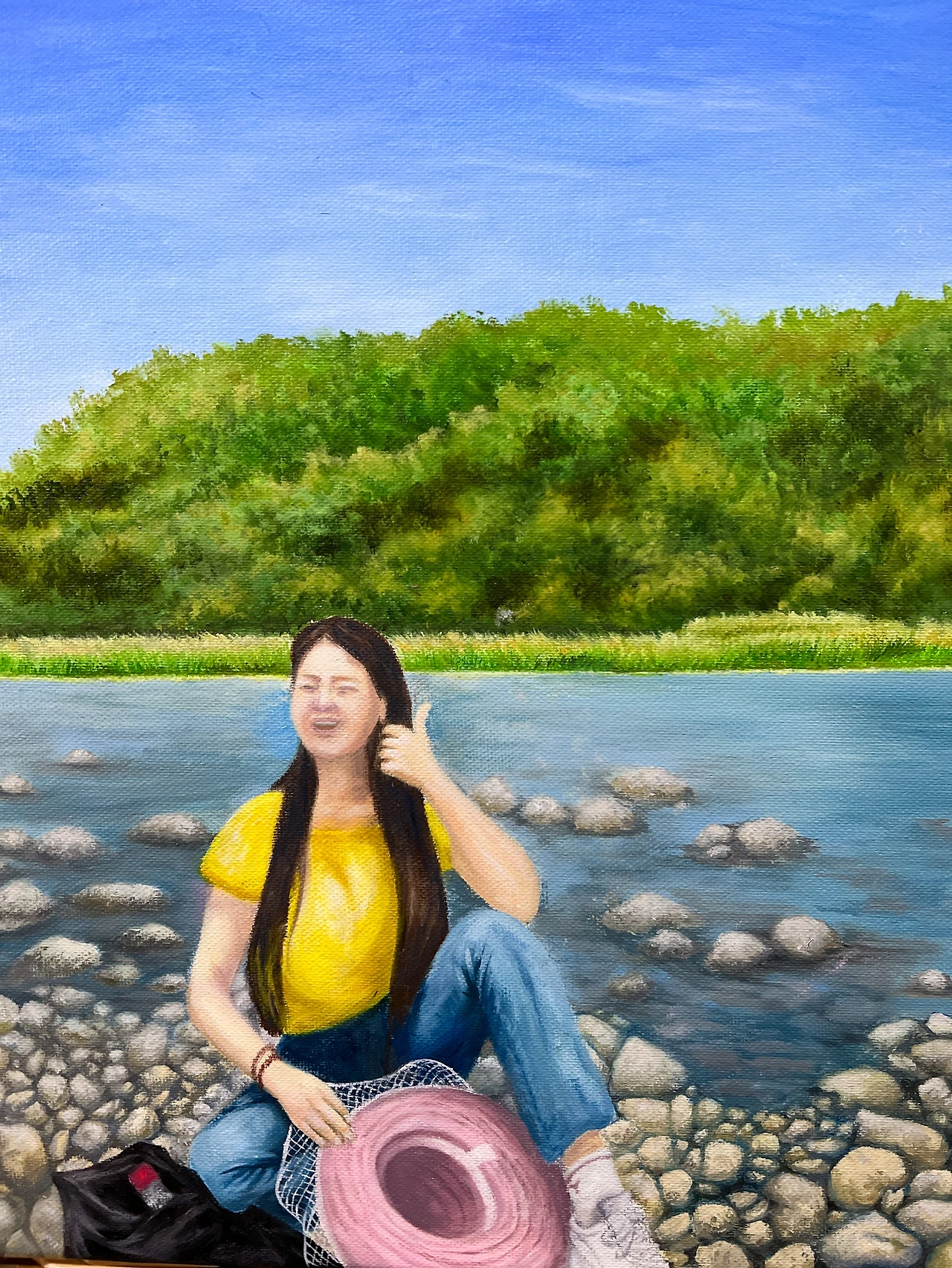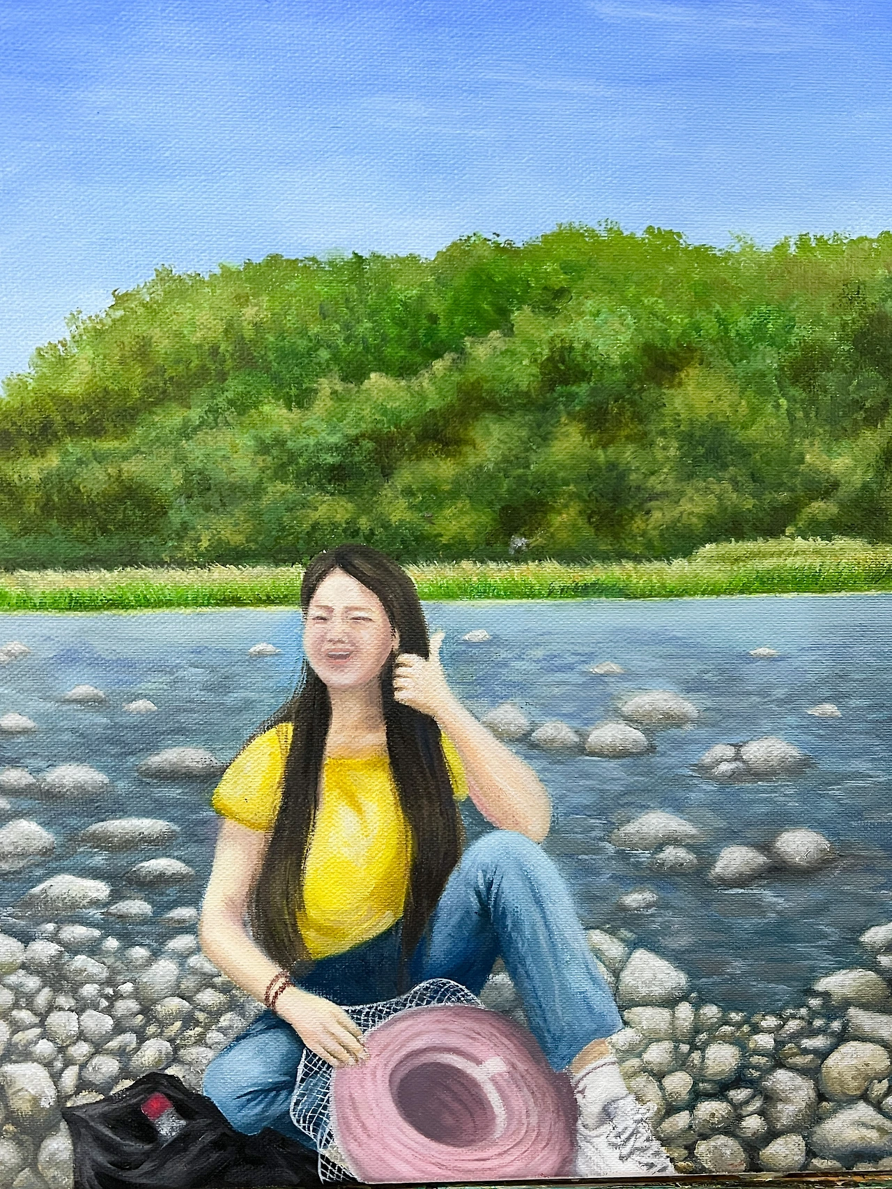 사진 속에서 활짝 웃는 친구의 모습에 이상하게 마음이 출렁였다. 다른 사람만 챙기던 친구가 비로소 오롯이 자신을 드러낸 것 같았달까. 반백을 목전에 둔 평범한 친구의 모습이 내겐 어느 시대, 어떤 아름다운 명화 속 여인들보다 더 아름답게 느껴졌다. 겨우 주 1회 취미 미술을 배우는 미술 초보 주제에 친구를 더 멋지게, 더 드라마틱하게 그림으로 남겨주고 싶었다.