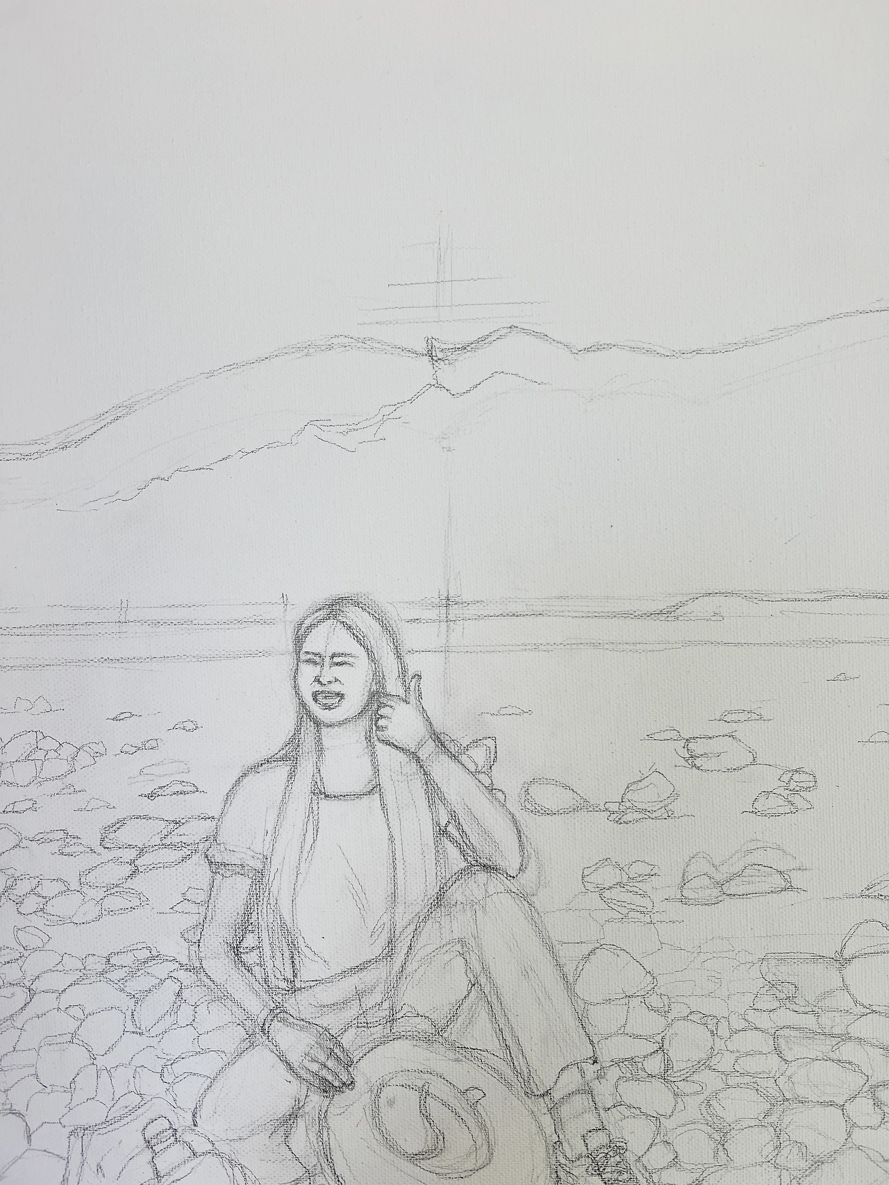 선생님은 돌을 하나하나 칠하지 않고 두리뭉실 칠한 다음 각각의 돌멩이들 간의 경계를 좀 더 구분 지으라고 하셨다. 하나하나의 돌멩이들에 집중할 게 아니라 그것들을 둘러싼 주변과 경계를 살렸을 때 나타내고자 하는 실체가 더 도드라져 표현되는 마법. 선생님께서 가르쳐주신 대로 그리니 정말 돌멩이들 각각의 모습이 살아났다.
