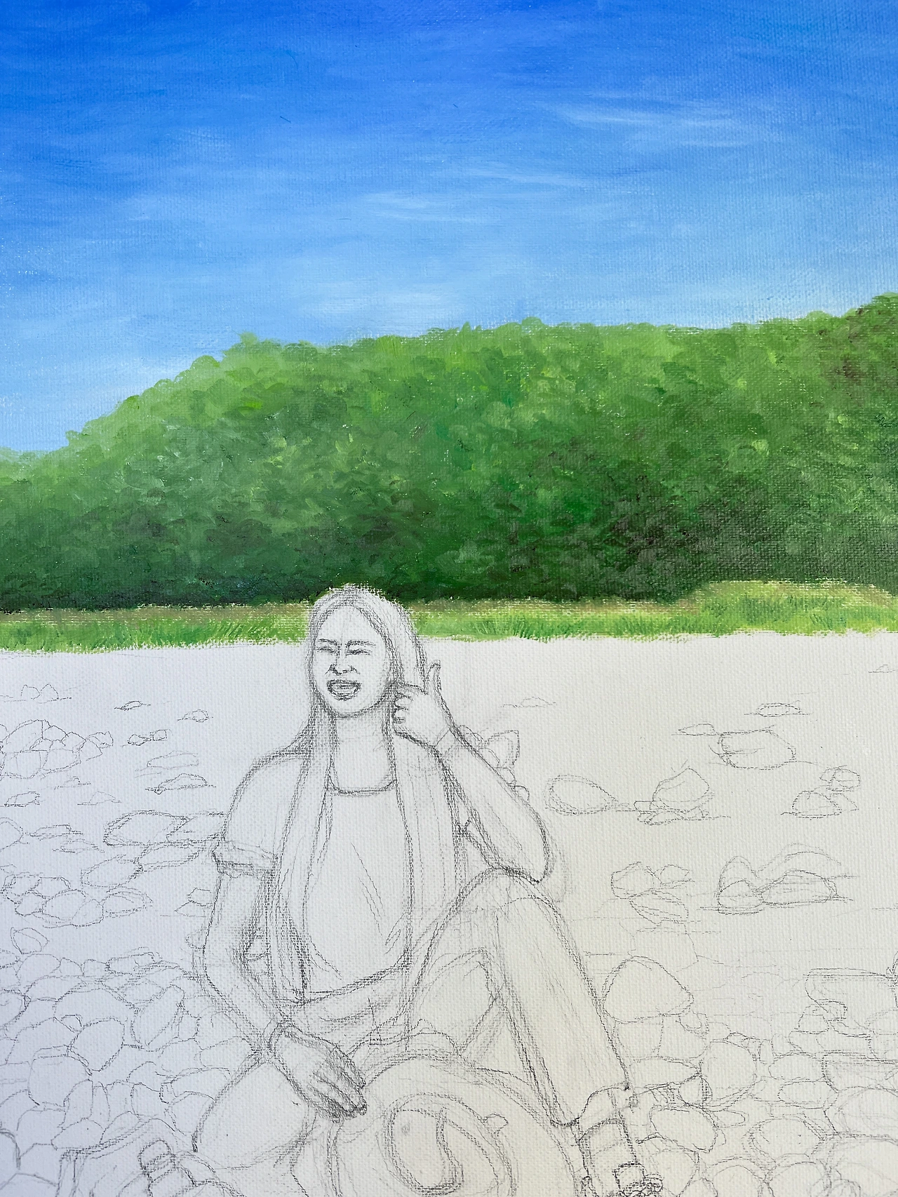 활짝 웃는 친구의 모습을 살리려면 고개를 살짝 젖히며 웃는 얼굴의 미세한 각도를 살려내야 했지만, 그렇게 하기에는 내 스케치 실력이 부족하다. 아쉬움이 남지만 친구를 그림으로 남기는 작업은 내내 즐겁다.