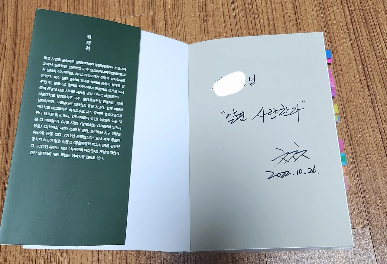 최재천 교수님의 귀한 싸인, <최재천의 공부> by 정혜영