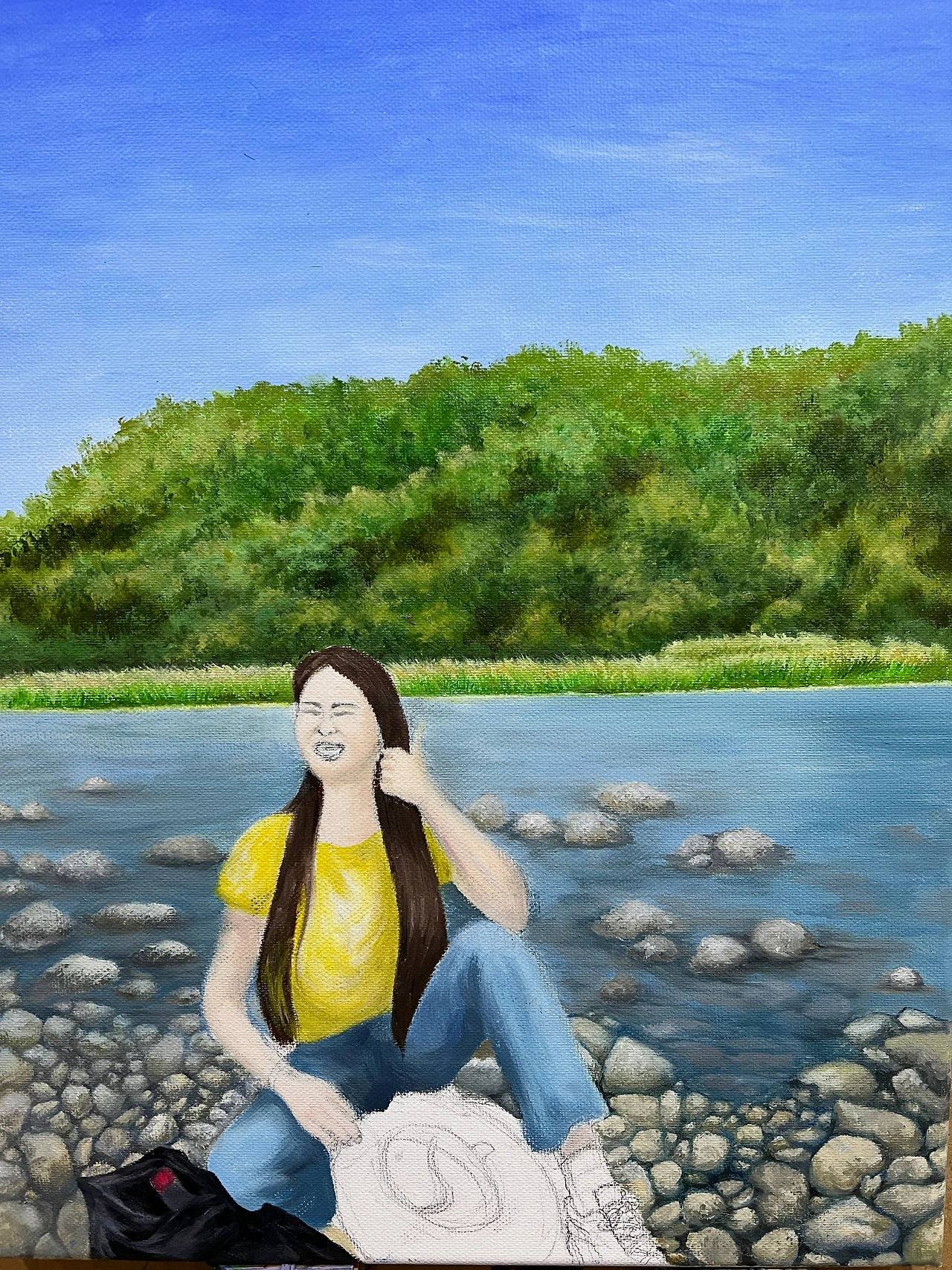 바람에 흔들리던 가지들에 마음을 뺏겨 그린 나무 가득한 풍경화를 겨우겨우 끝마치던 날, 미술학원 선생님께서 물으셨다. 나는 얼른 휴대폰 앨범을 뒤져 다음에 그리기로 마음먹고 있었던 사진을 선생님께 보여드렸다. 손가락으로 긴 머리를 쓸며 머리를 살짝 젖히고 활짝 웃는 친구의 모습이 담긴 사진이었다.
