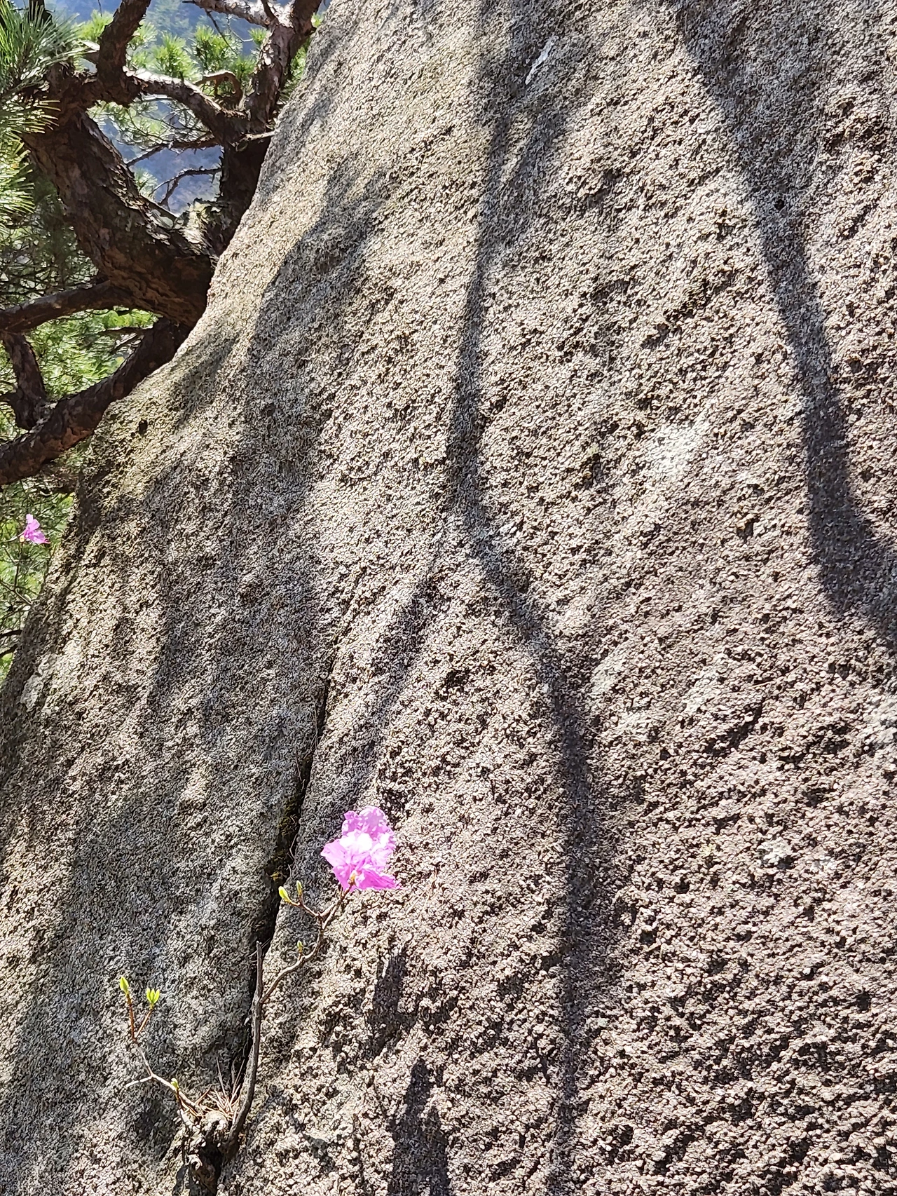 진달래를 사람들과 어느 정도 거리를 두고 때가 되면 조용히 피었다가 지는 소박한 꽃이라고만 생각했는데, 북한산에서 만난 진달래는 생각보다 화사했다. 오르는 길 내내 길 양편에 활짝 피어난 진달래꽃 무더기에 산길은 말 그대로 '꽃길'이었다. 낮은 곳에서는 키를 높이고 높이에 따라 키를 낮춰 피어난 진달래를 보며 어릴 적 내 키를 훌쩍 넘어 피어나던 진달래를 떠올렸다. 어린아이 눈에 비친 키 큰 진달래가 저 정도 크기였겠구나. 어린아이의 눈에 비친 세상이 실제와 얼마나 다른지 안다는 것은 왠지 섭섭한 일이다.