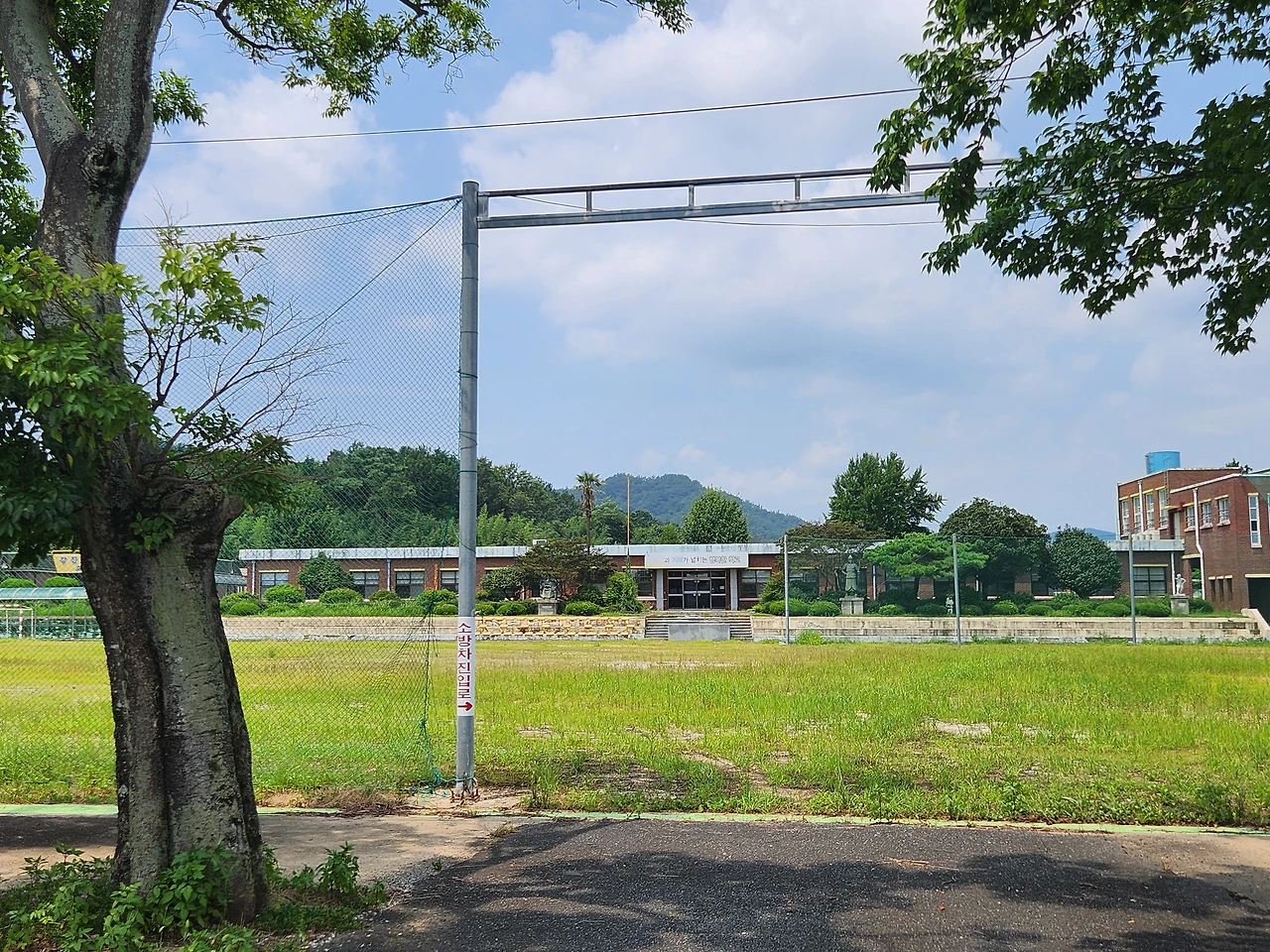 예전 흙길 위에 단정히 깔린 아스팔트 길 끝에서 첫 근무지였던 학교 건물이 모습을 드러냈다. 낡았어도 학교건물은 그 자리에 그대로였는데, 굳게 닫힌 철문 너머로 운동장에 잡초가 무성했다. 인터넷에 검색하니 2020년 이래 '휴교' 상태였다. 20년 전에도 전교생이 60~70명 남짓이었으니 지금까지 학교가 그대로 보존되어 있을 리가 만무하지만...